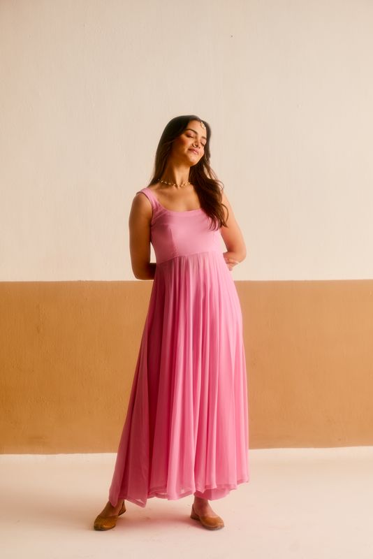 Georgette Anarkali Kurti: The sleeveless kurti is crafted from premium Georgette, chosen for its lightweight feel and the way it creates a voluminous, "to die for" flare.