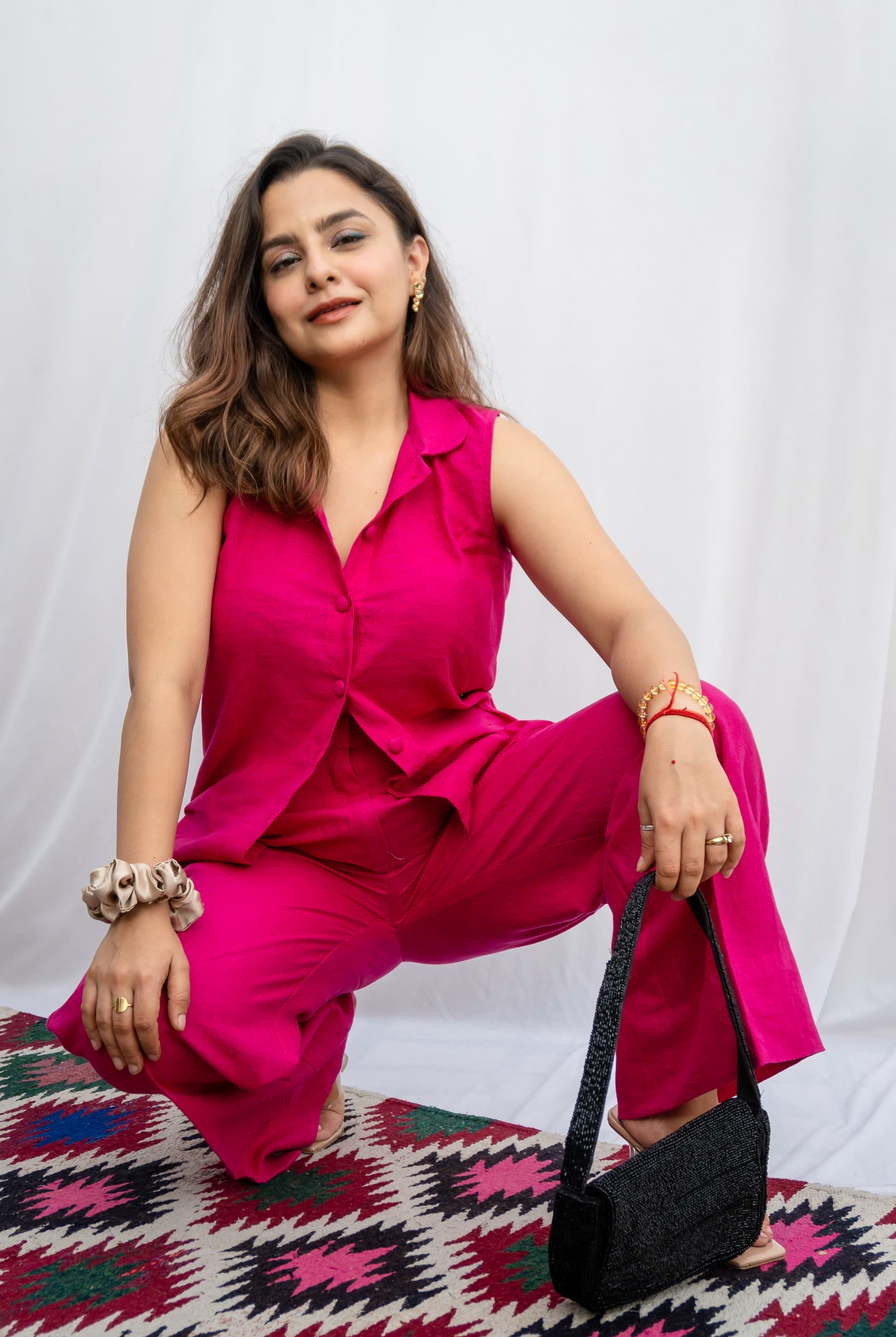 Some shades speak louder than words — and this is one of them. Inspired by my go-to lipstick, this co-ord set in that bold, beautiful fuchsia is my love letter to confidence.
