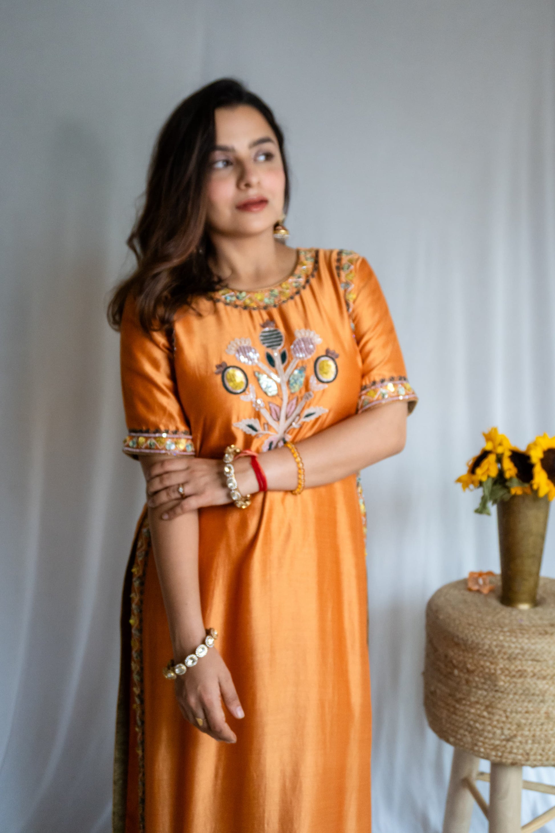 Mustard Hand-Embroidered Pure Silk Kurta Set – Inspired by Candlelight Conversations
