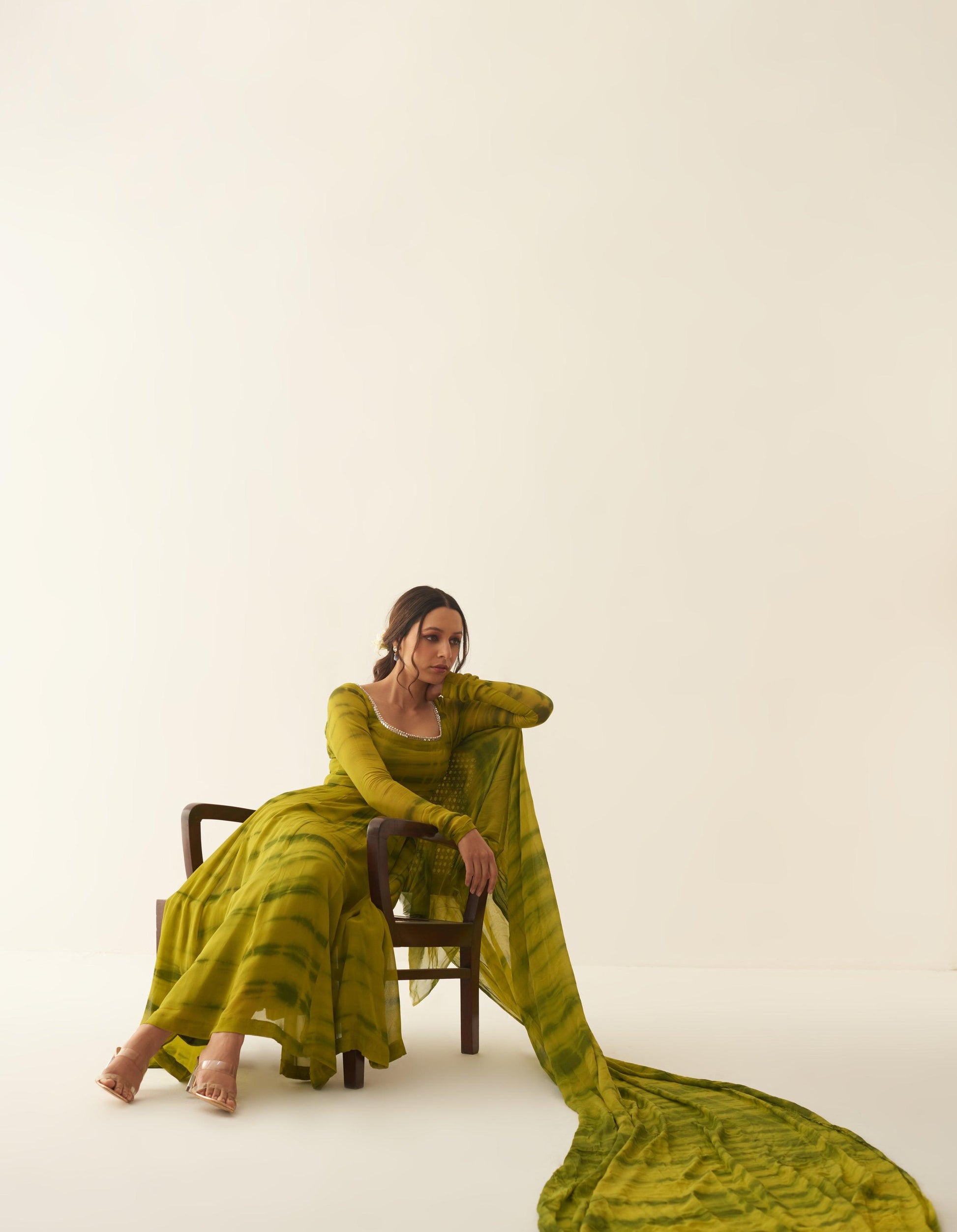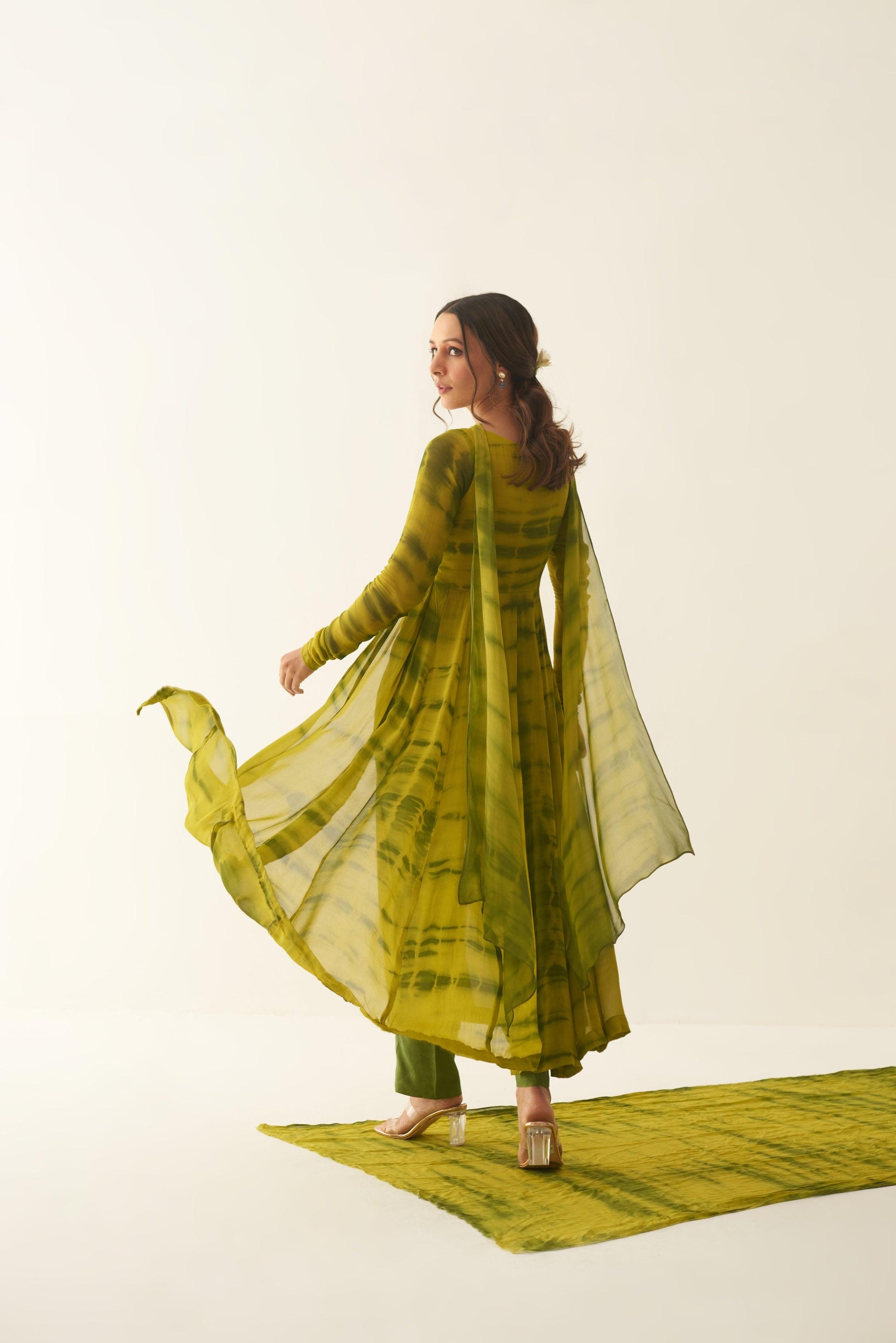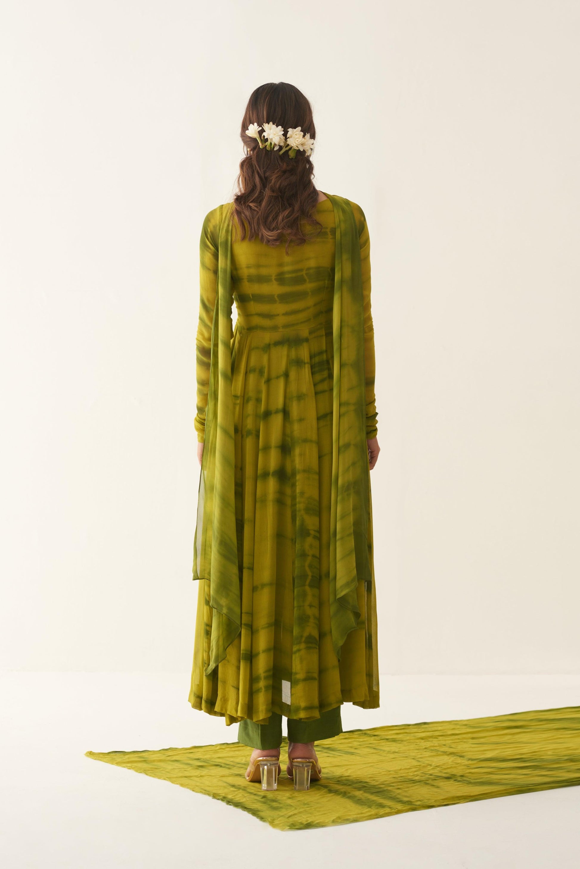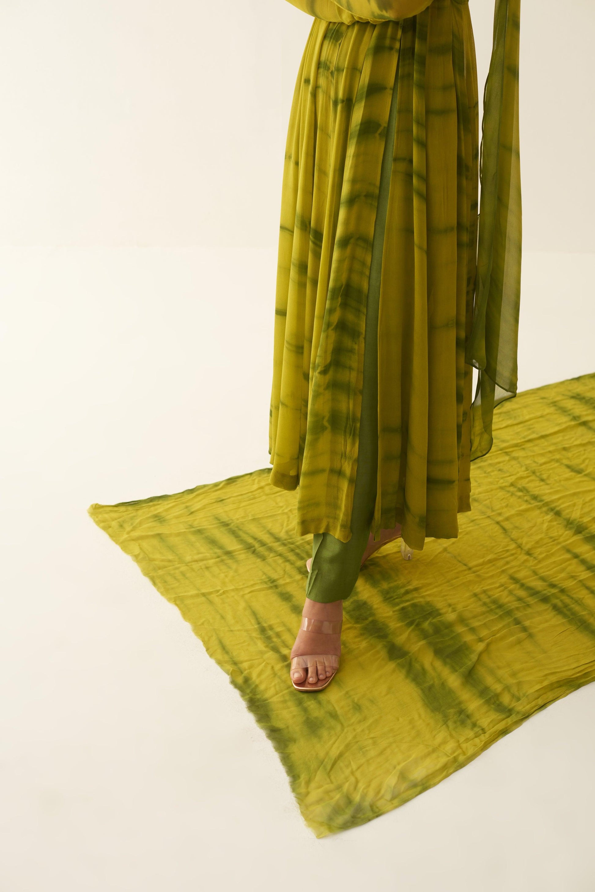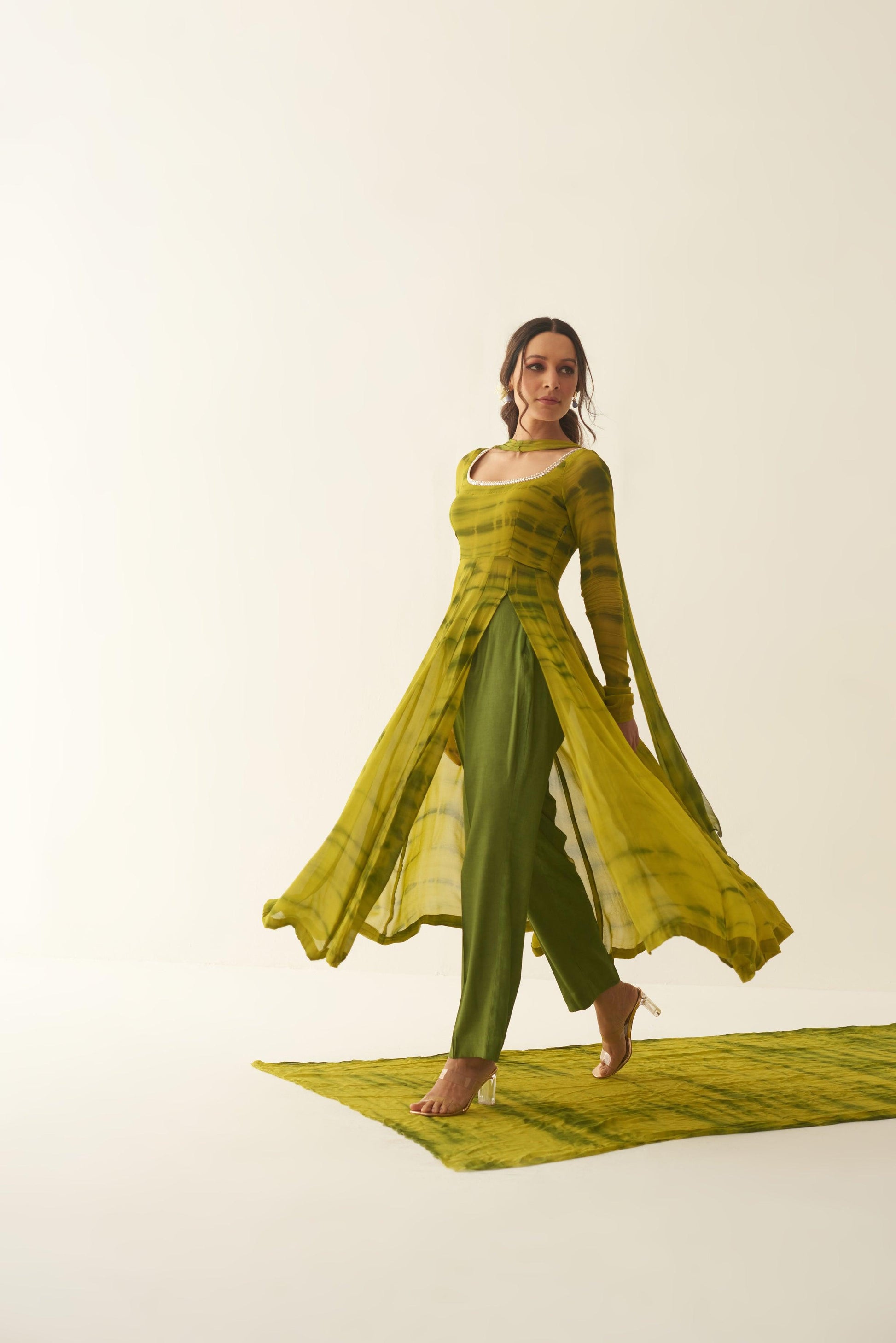 Grass Root set is a there piece set, which is a blend of hand dying in three different colours with a beautiful pear and mirror detailing in the neck, side slit and kallidar kurta with an elongated sleeves is a cherry on top, dupatta and the pants will compliment the look even more, you would absolutely fall in love with viscose fabric so comfortable and chic.