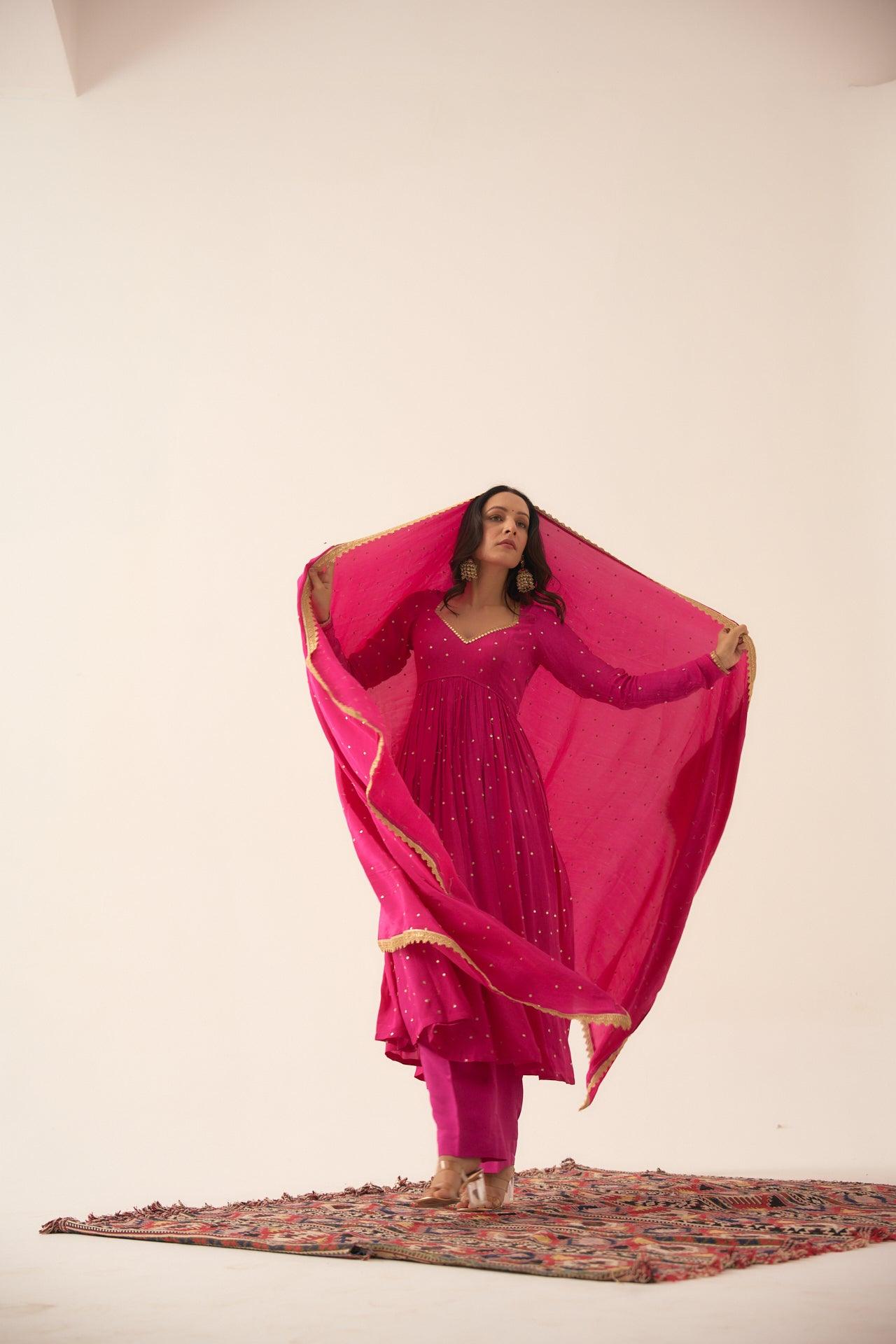 All hand crafted in house with that perfect hand dying we give your fabrics, every damn time we make it, The nyra cut with a little extra detailed look. We’d go on and on to make you fall in love with this particular beauty, Dupatta is an extravagant long and broad spectrum, with lace details, as you’d like it.
