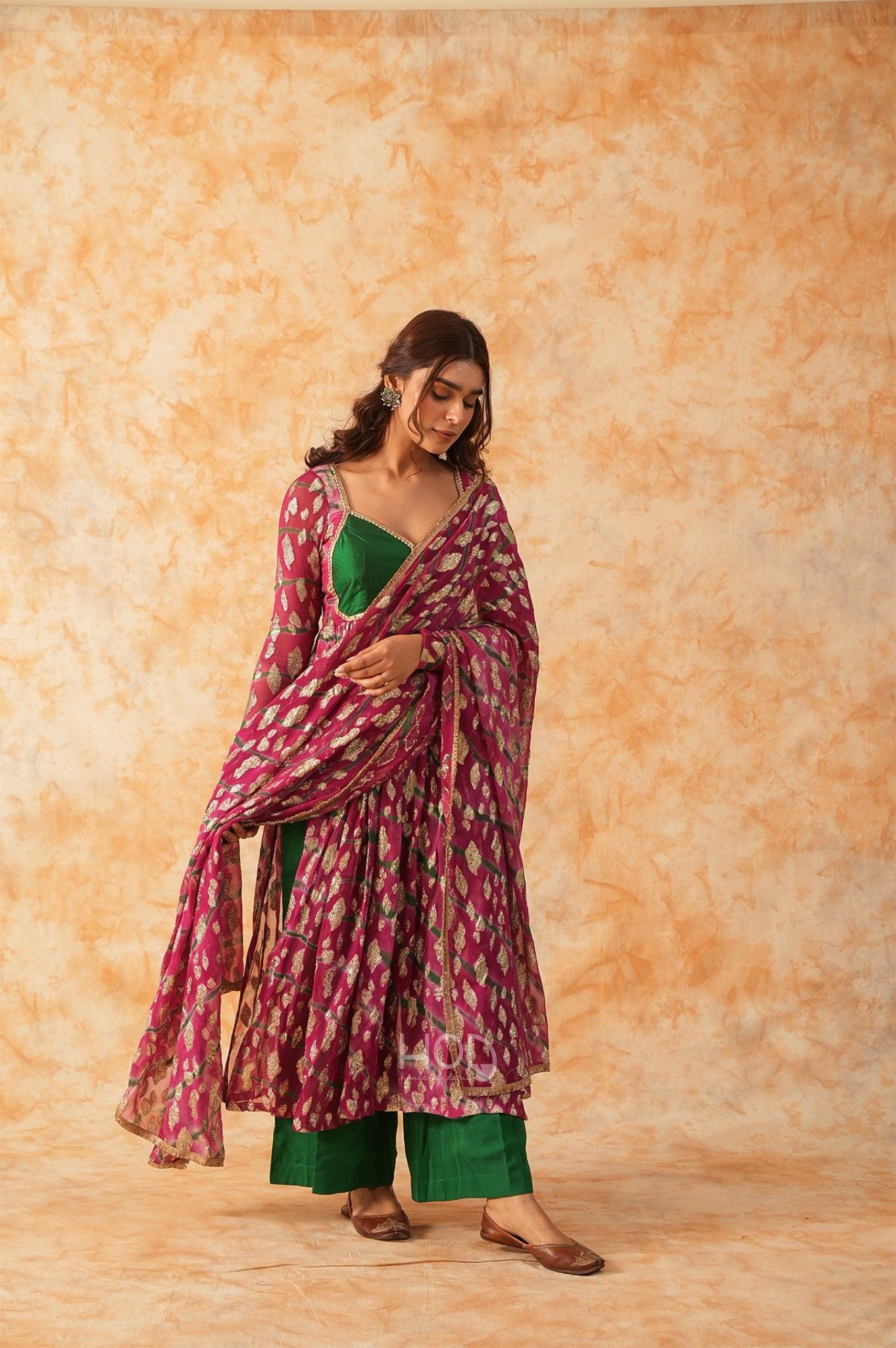 TYPE : Indo-western suit with pants, dupatta and kurta.