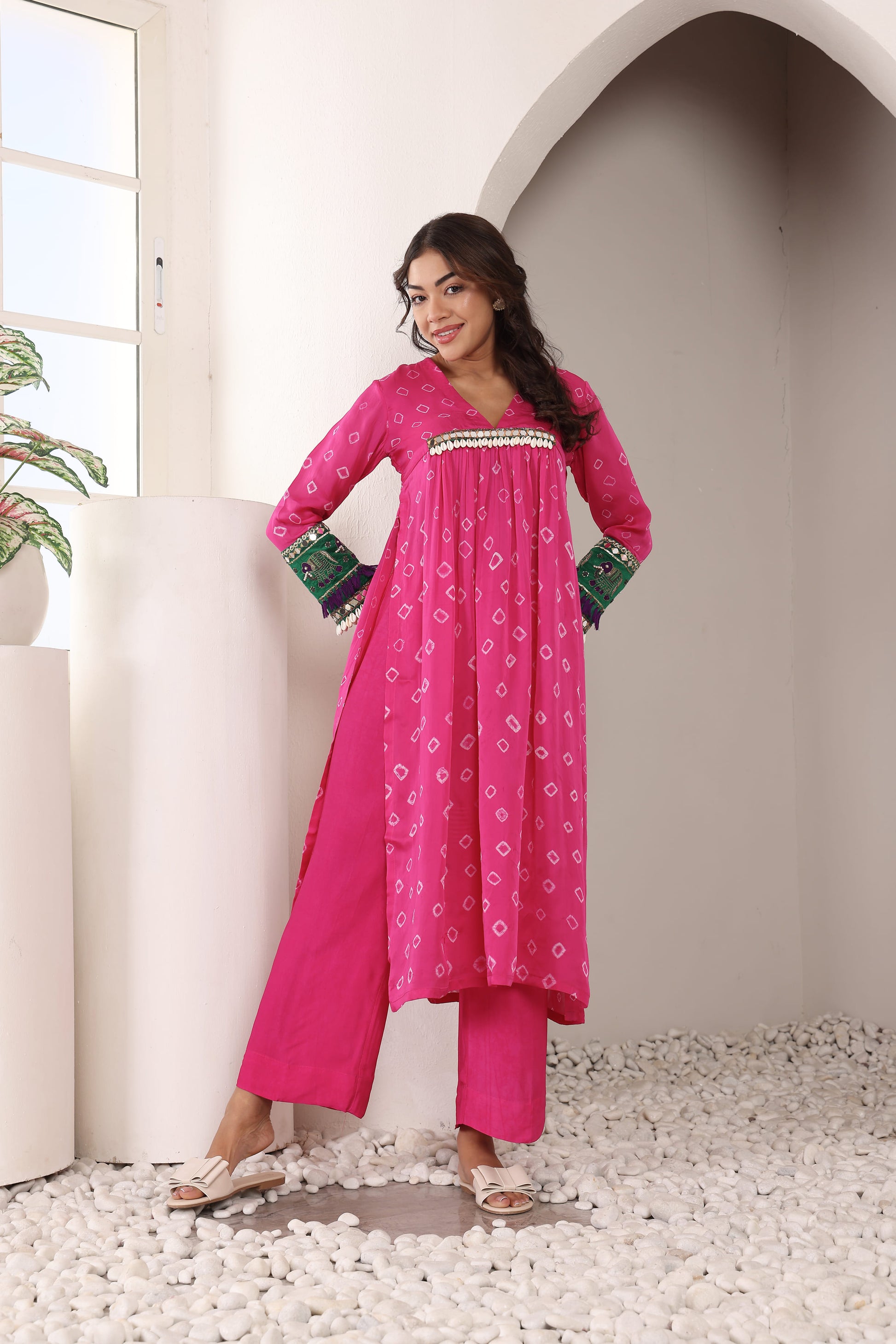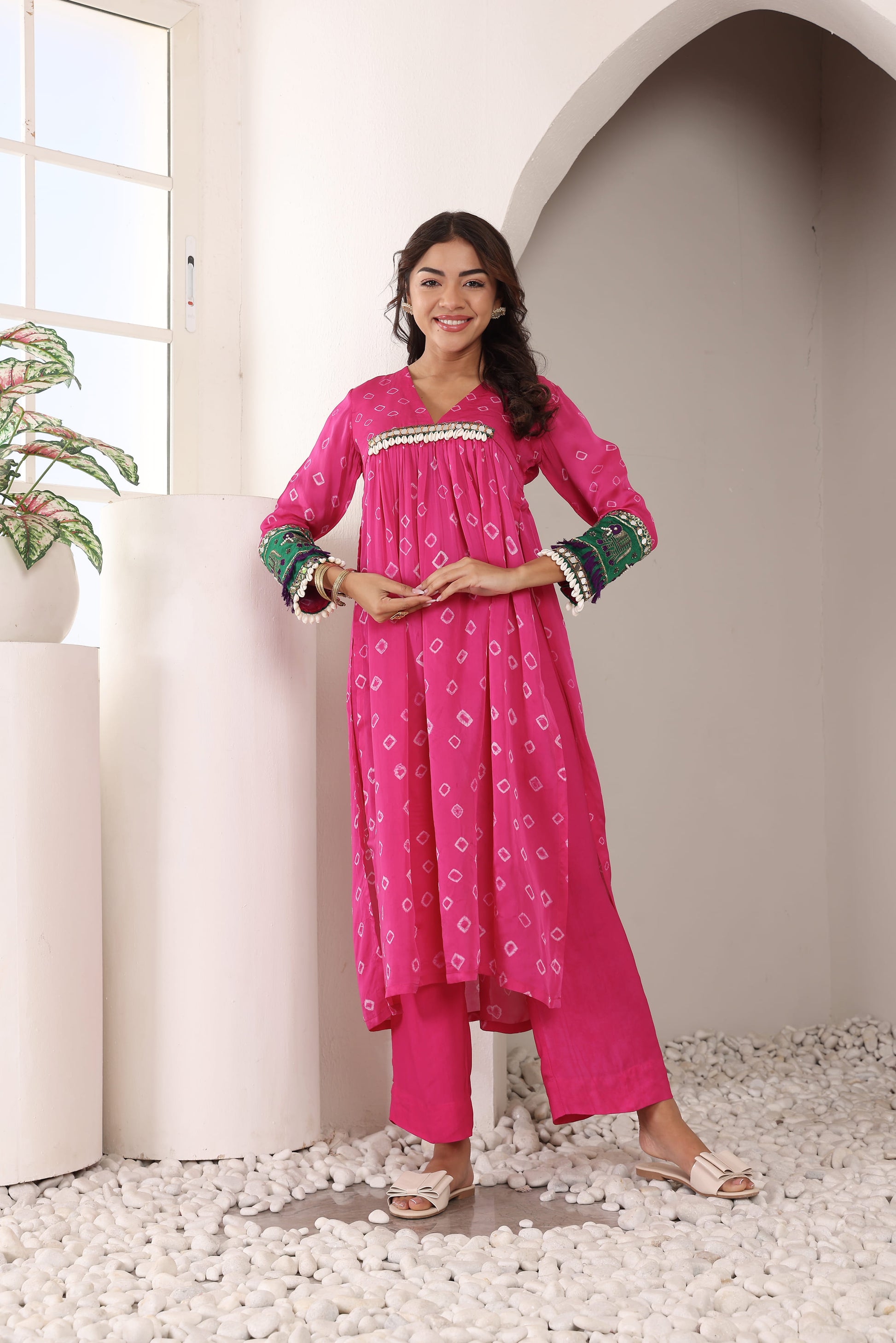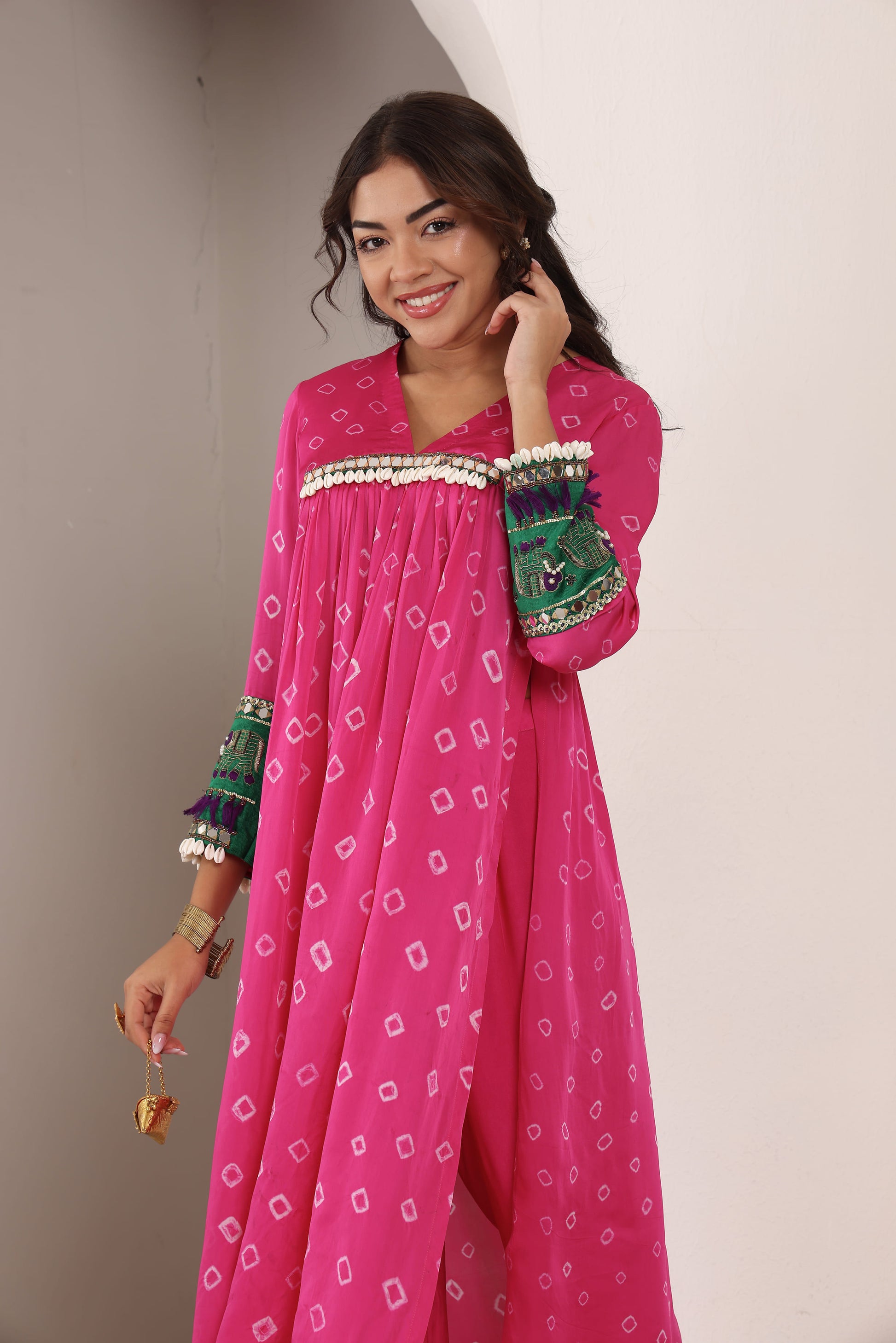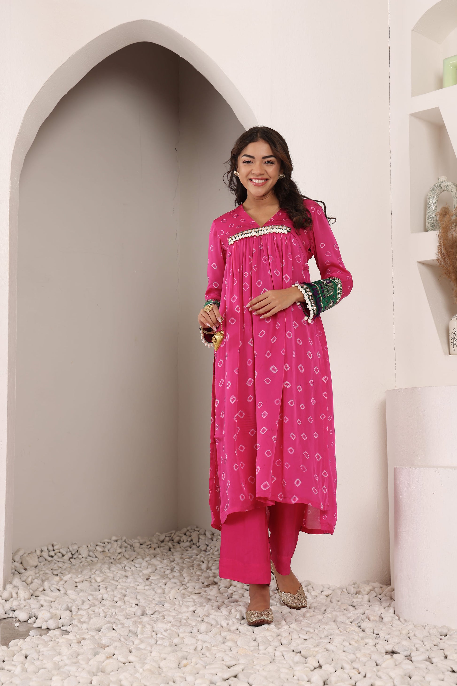 Hand-Dyed Bandhani Satin Organza Kurta Set