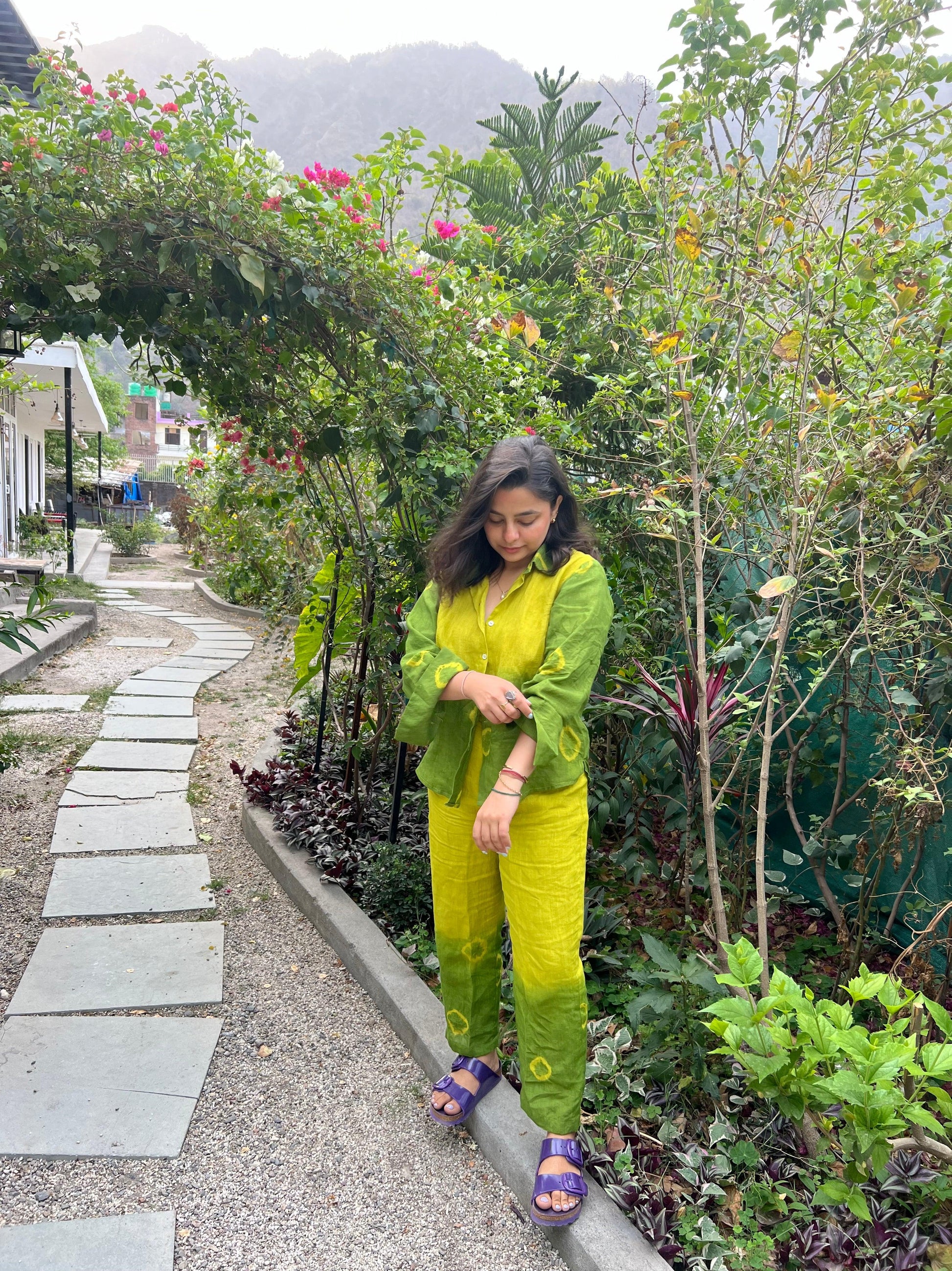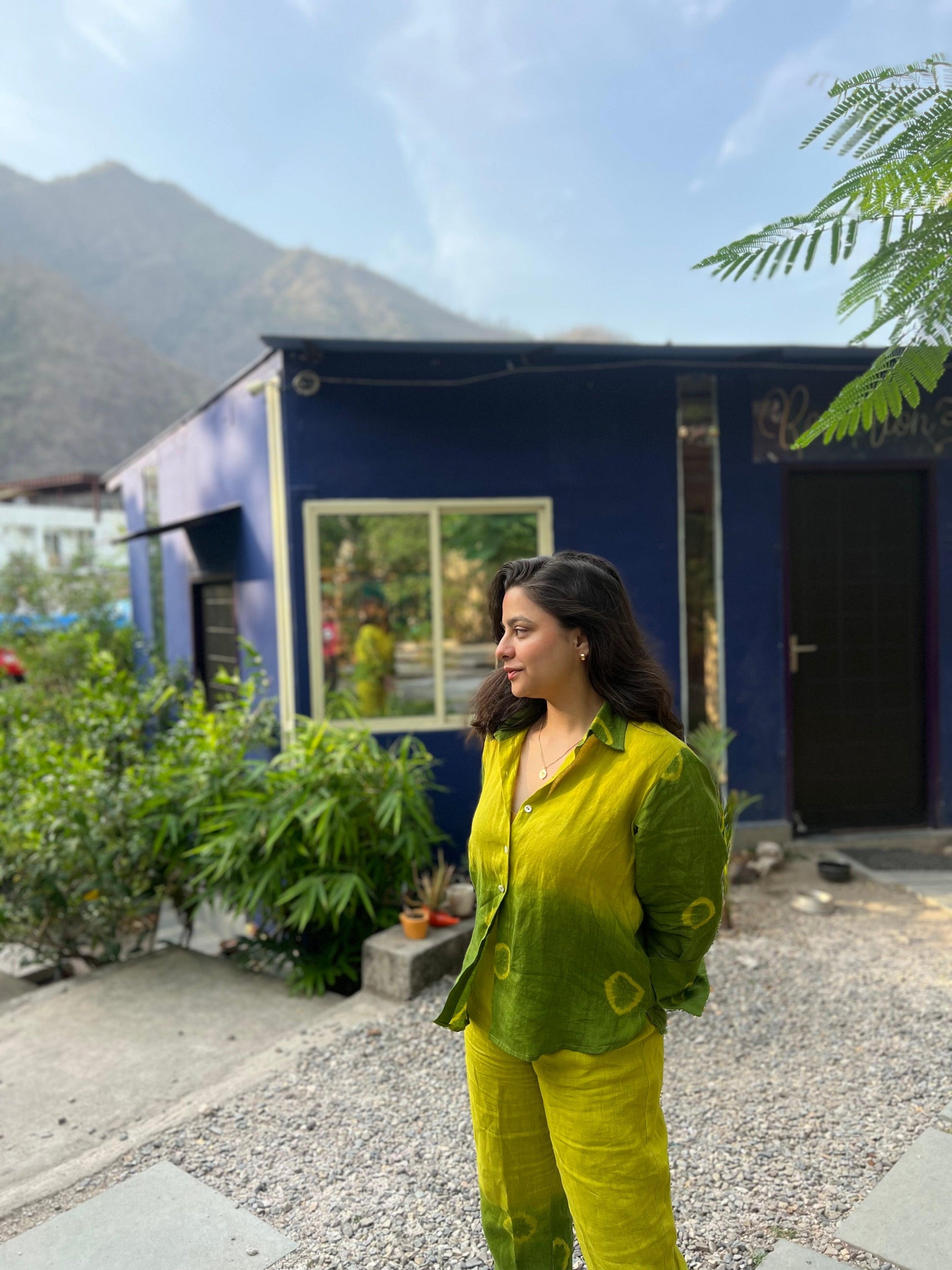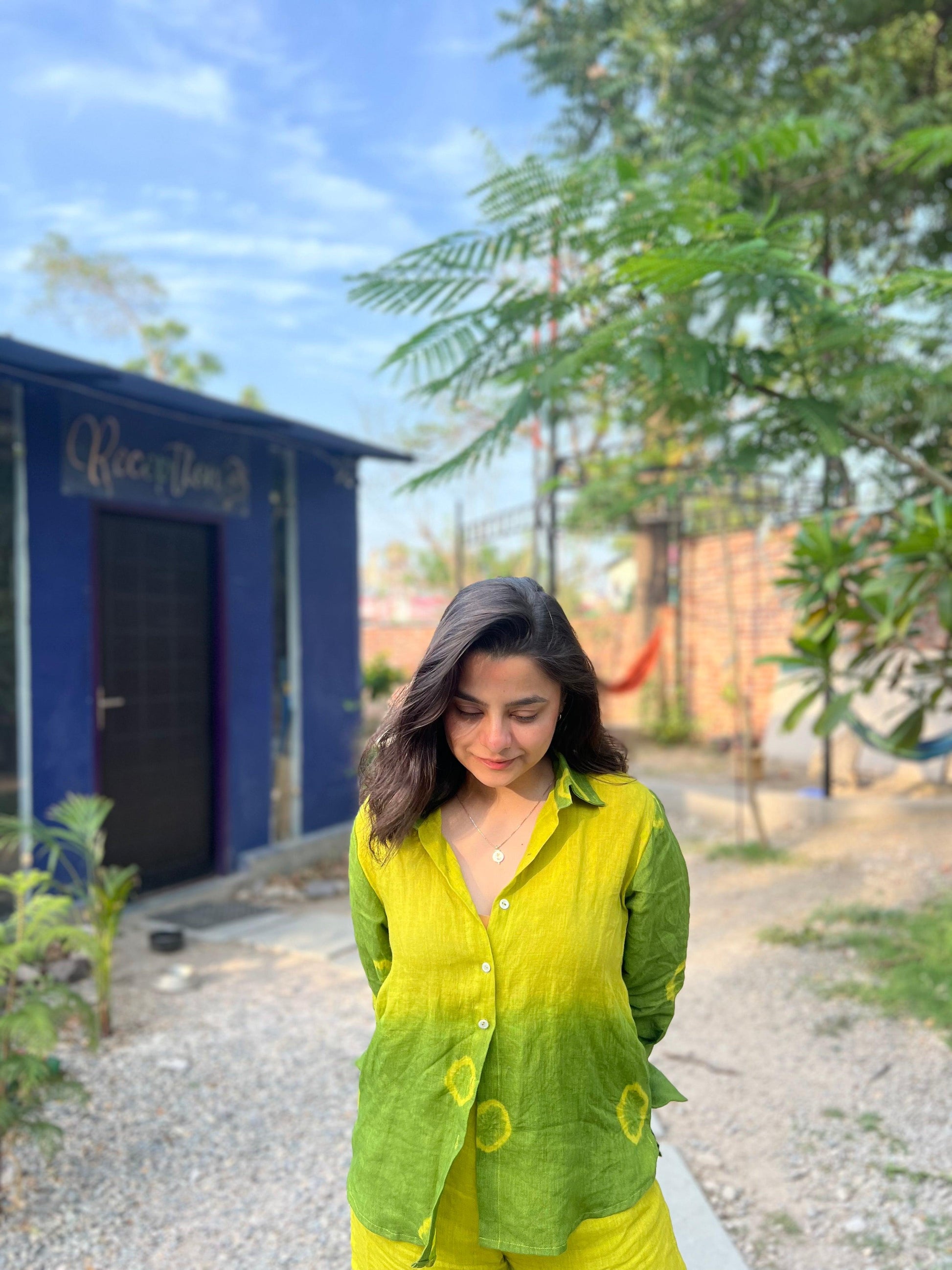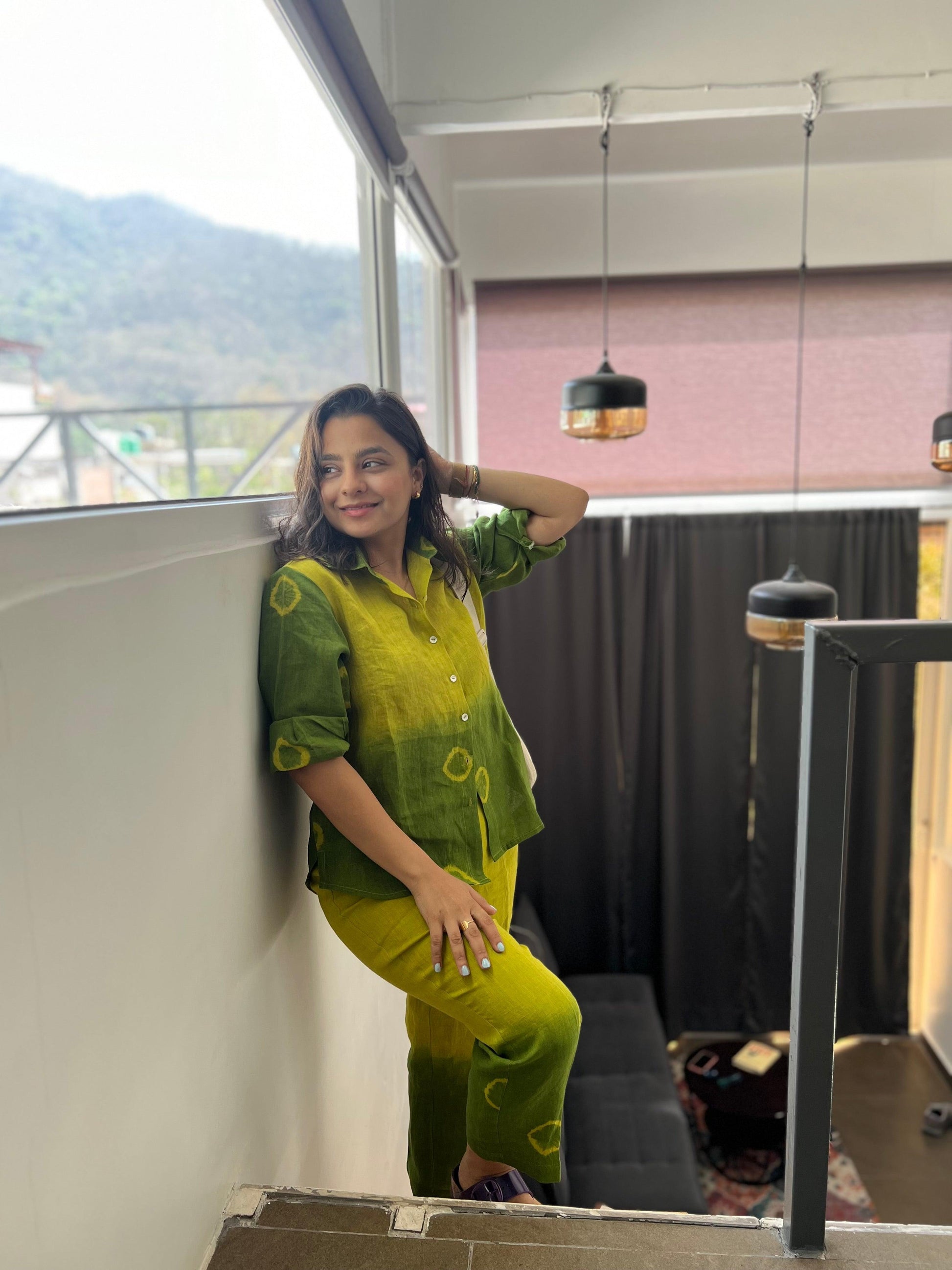 The main idea was combine the ombre tie dye, with Bandhani circles, just how well incorporated to bring the best of both modern and contemporary world. Linen topping it with base being it, shirt with pants made in an inside out seamless pattern.