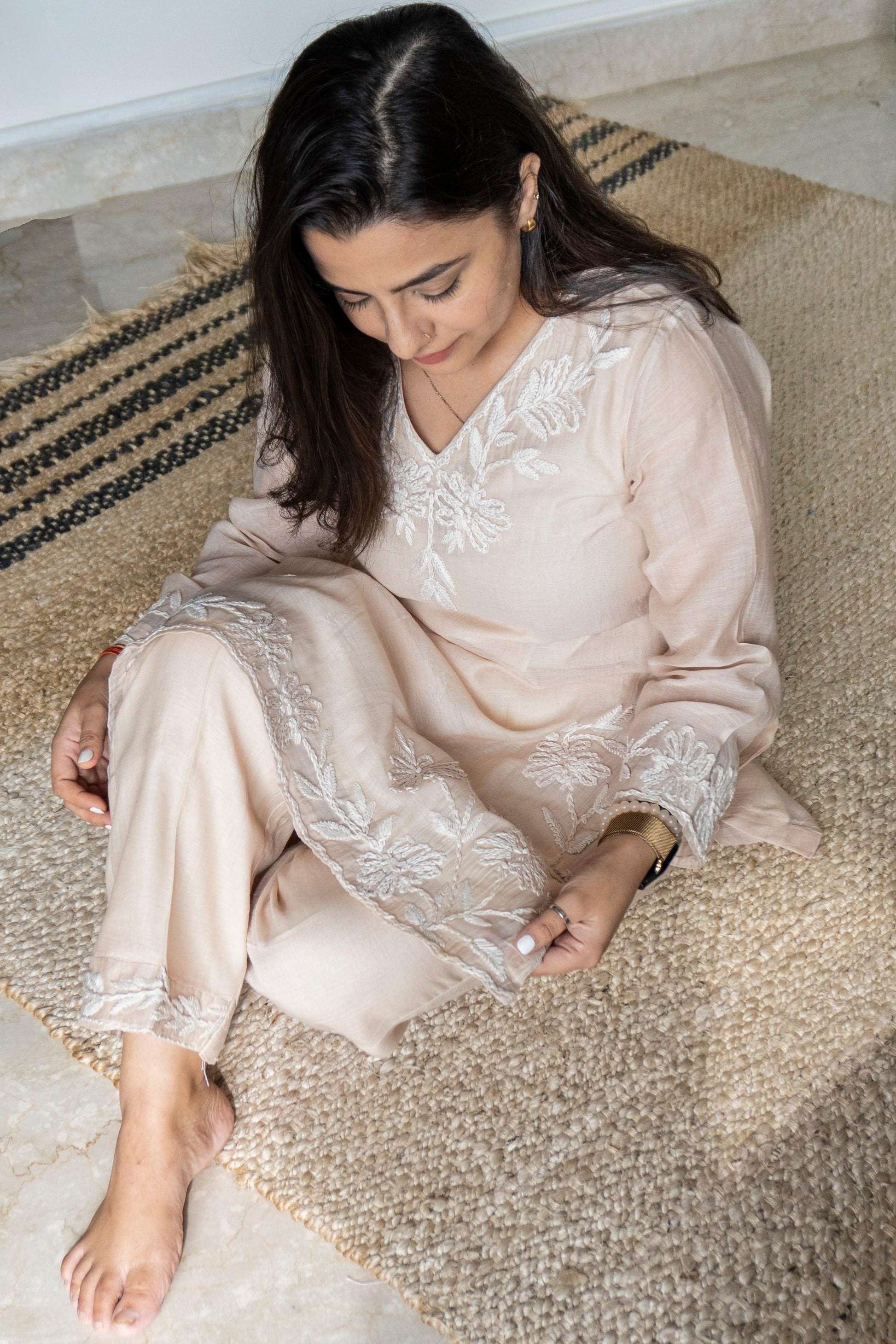 Disclaimer: These pieces are Hand dyed and embroidered and hence slight variations might occur due to the nature and colouring processes, colours might vary a bit in pictures and the actual product. Also the pants are not included in this set.