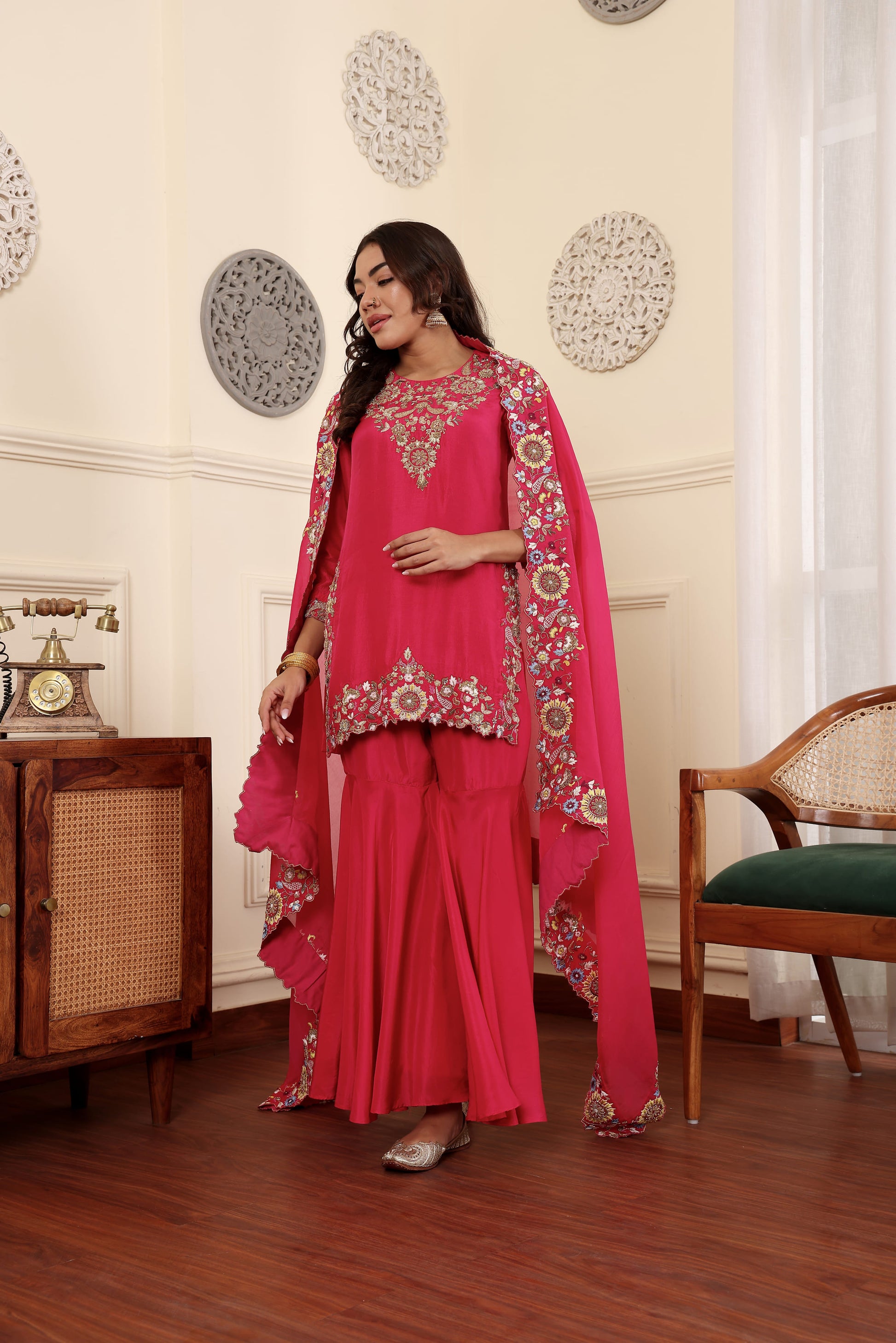 Designed for comfort and grandeur, this handcrafted sharara suit is the perfect choice for weddings, festive occasions, and celebrations, making it a must-have in your wardrobe.