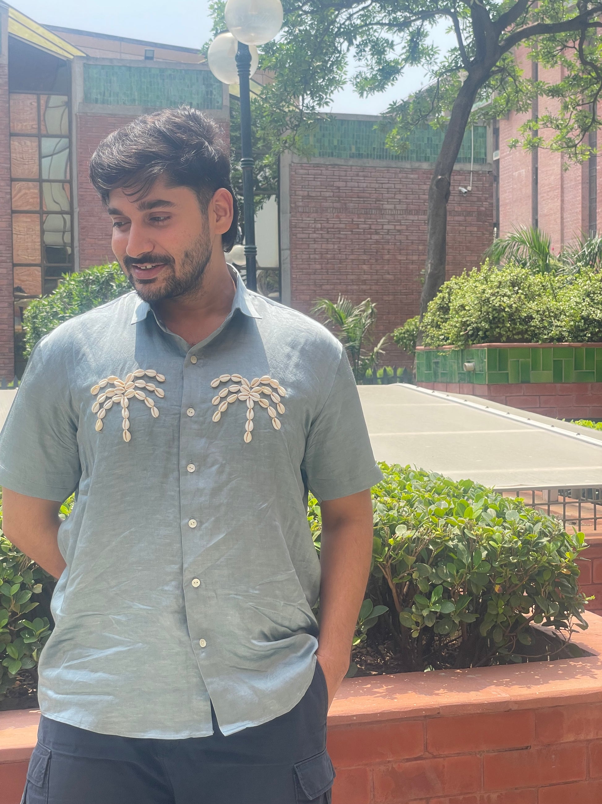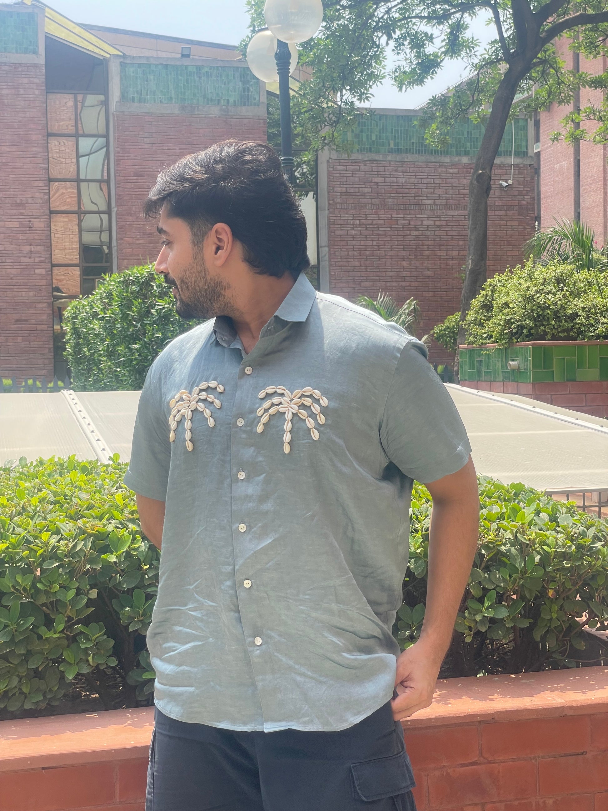 Handcrafted in Luxe Linen Satin with Real Shell Embroidery