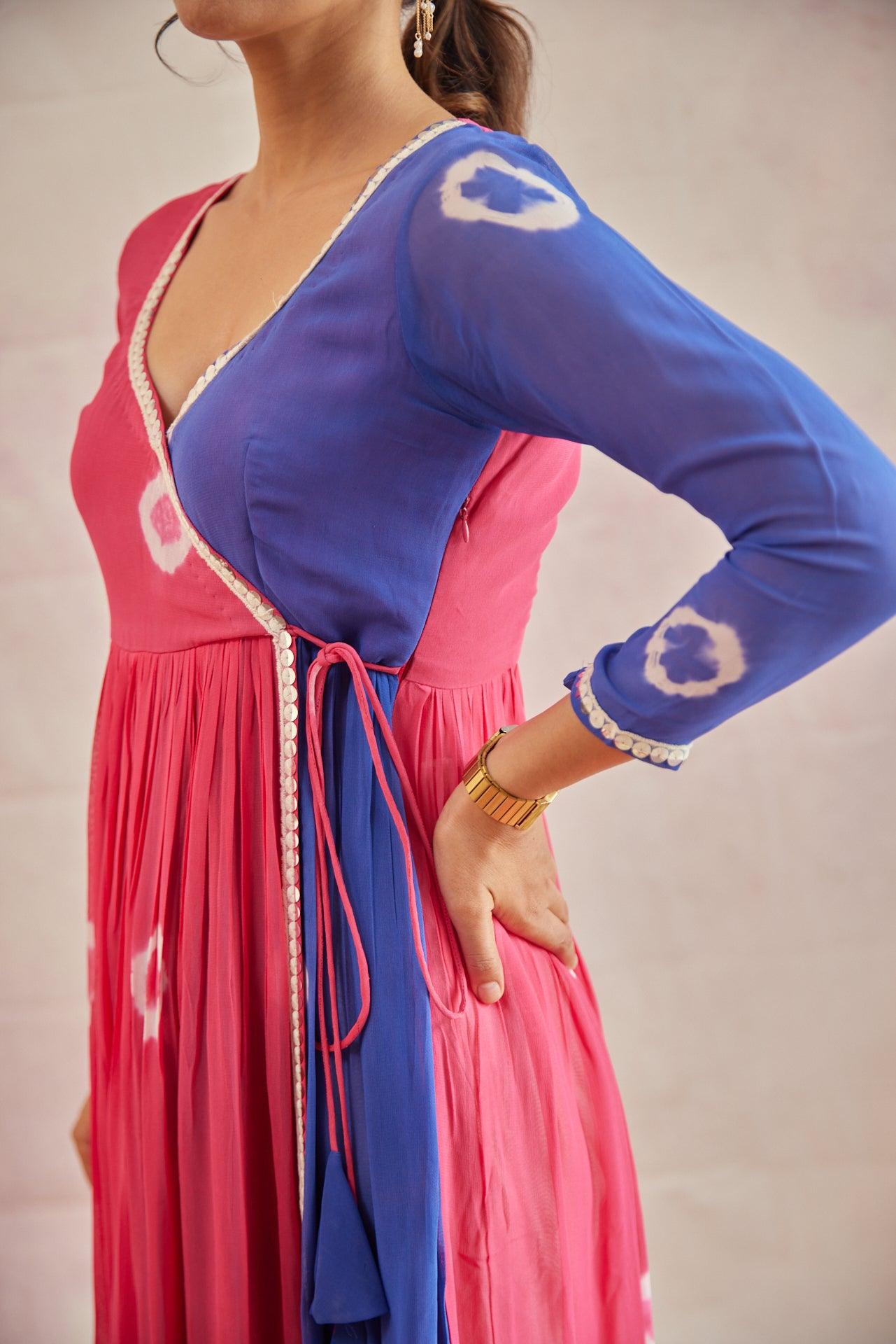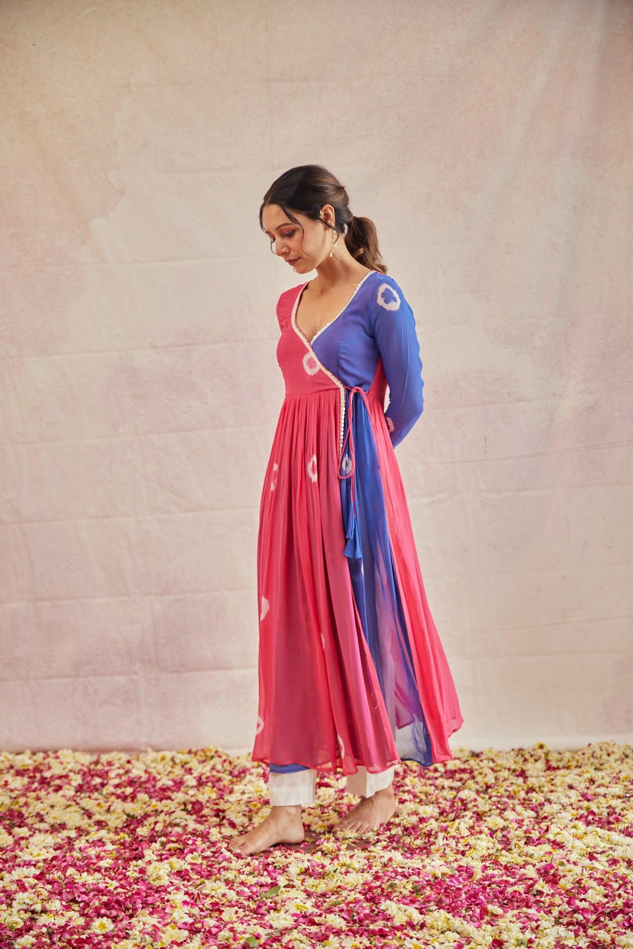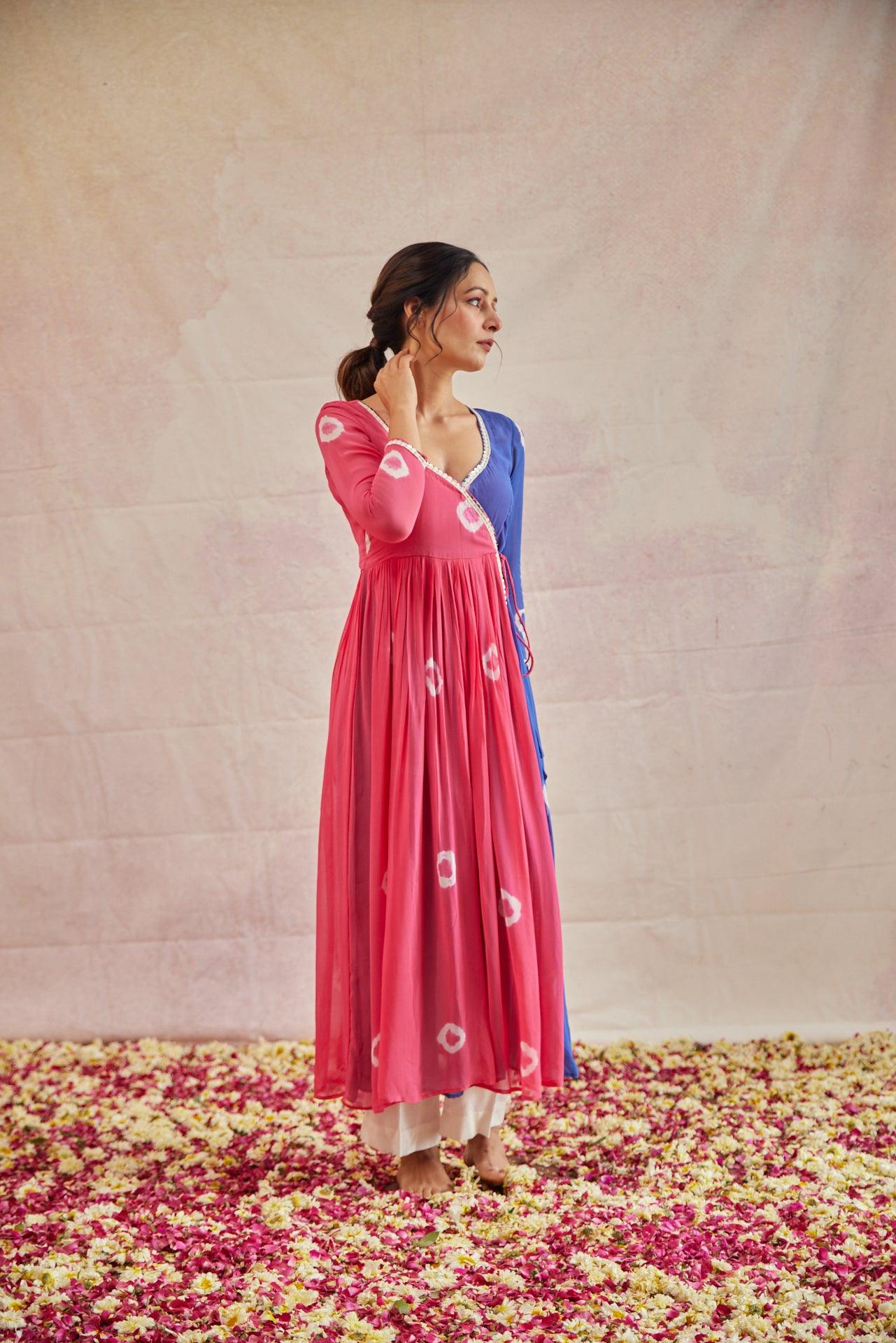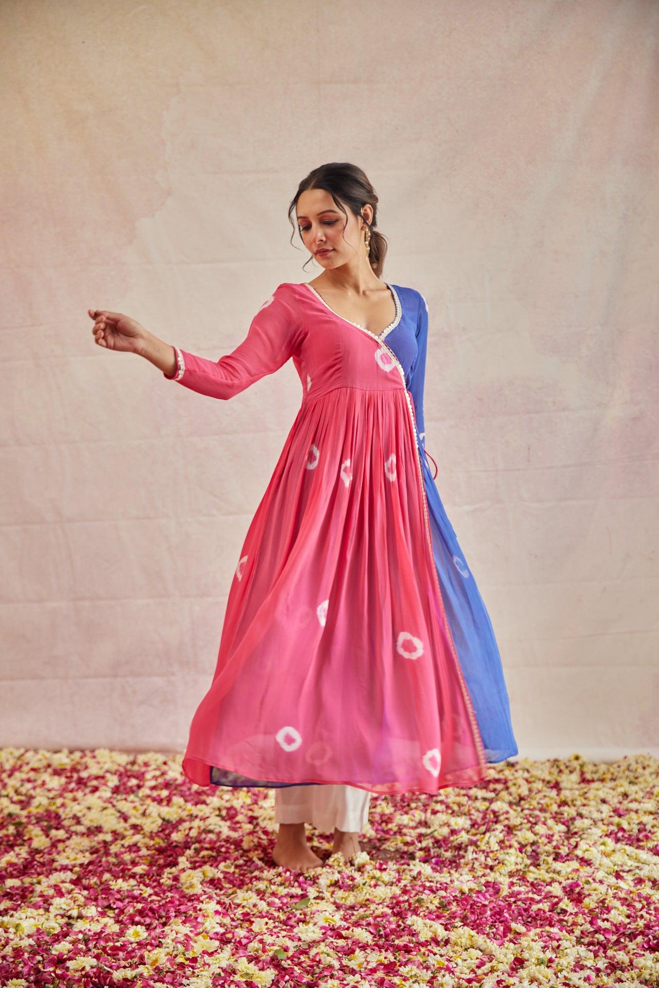 STYLE: Angrakha style cut with sweetheart neck and an slim cut sleeves with sequin thread lace in the neck and front.