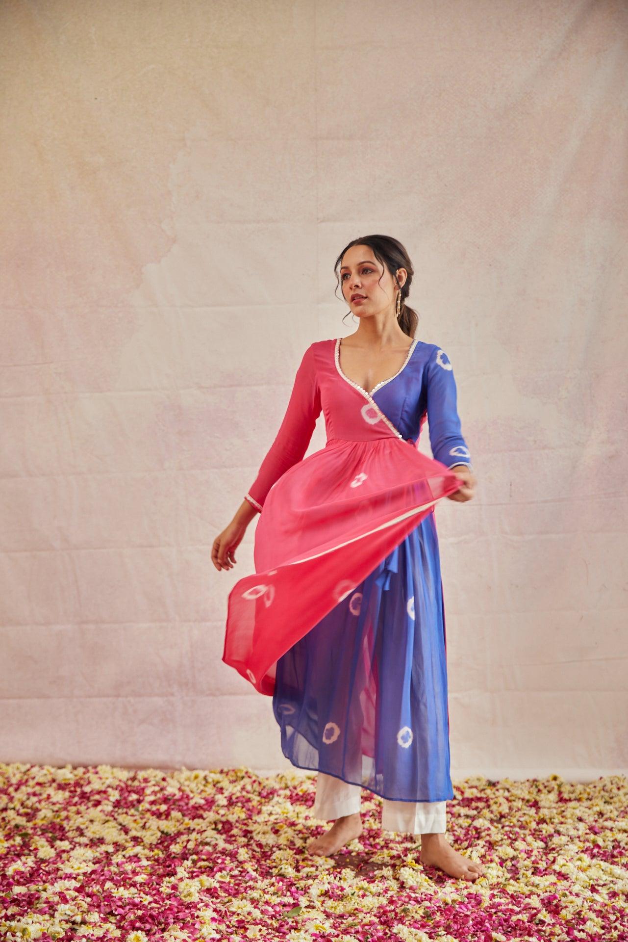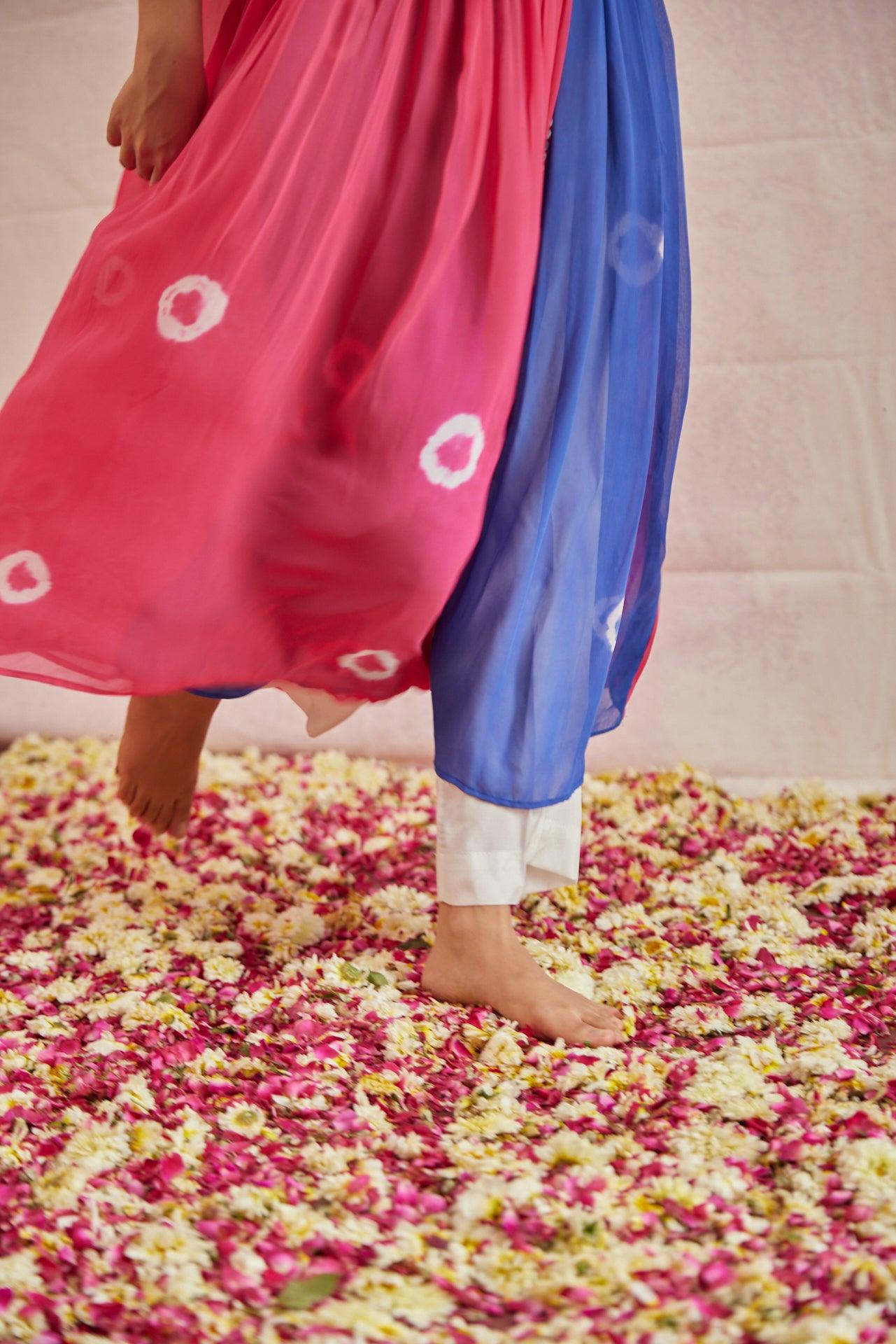 Disclaimer: These pieces are tied and dyed with hands with natural dyed and hence slight variations might occur due to the nature and colouring processes, colours might vary a bit in pictures and the actual product.