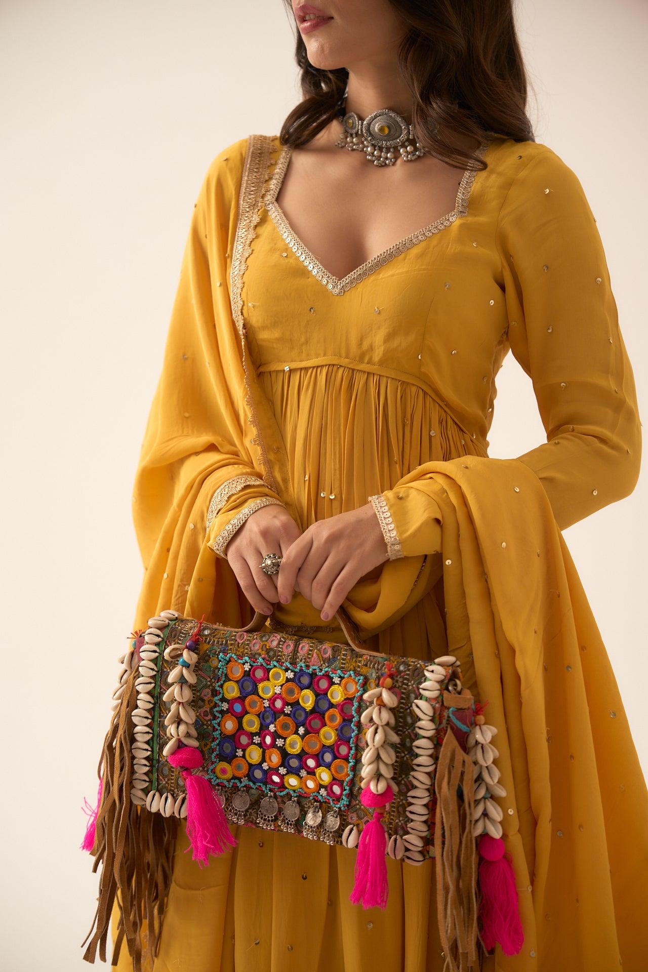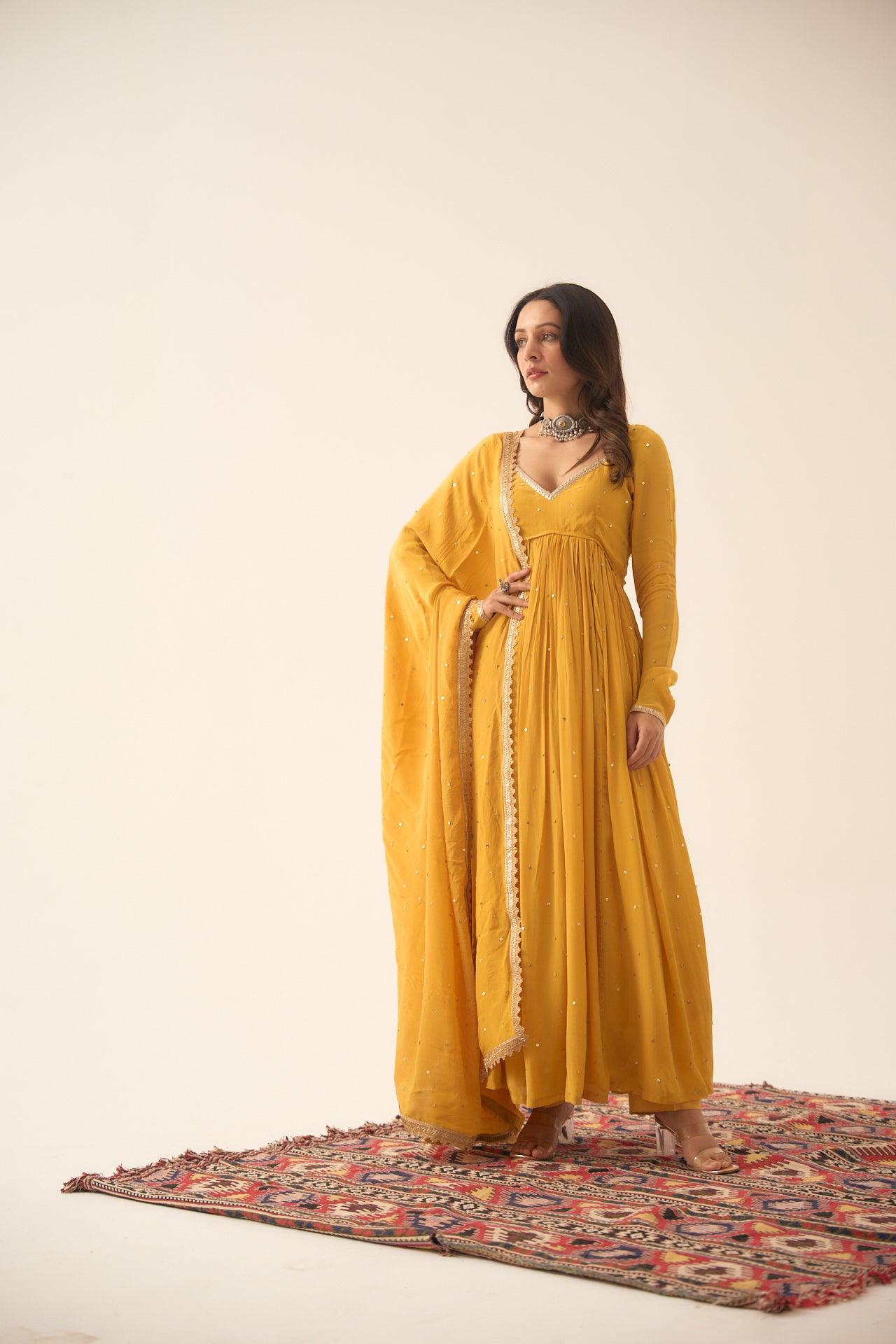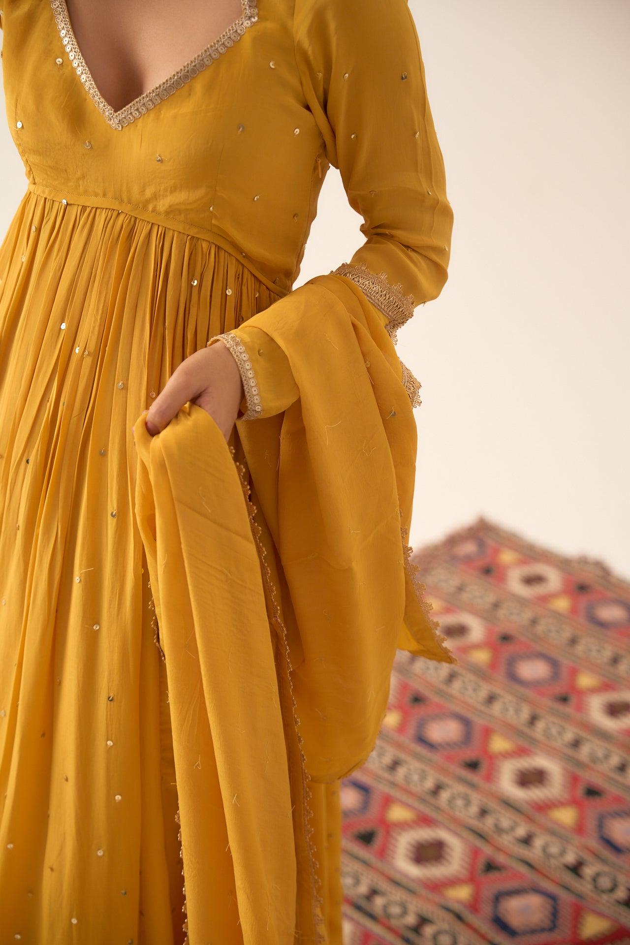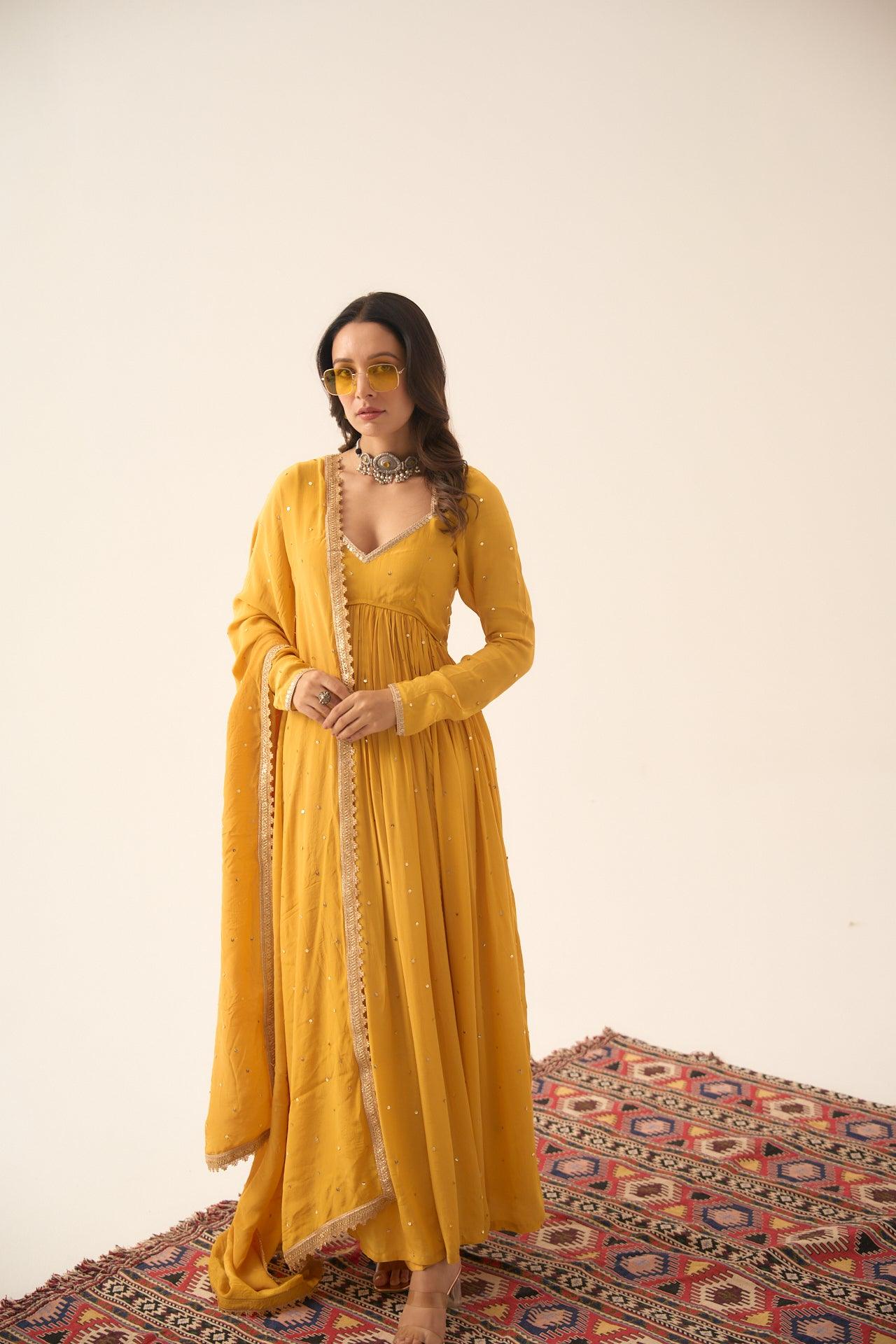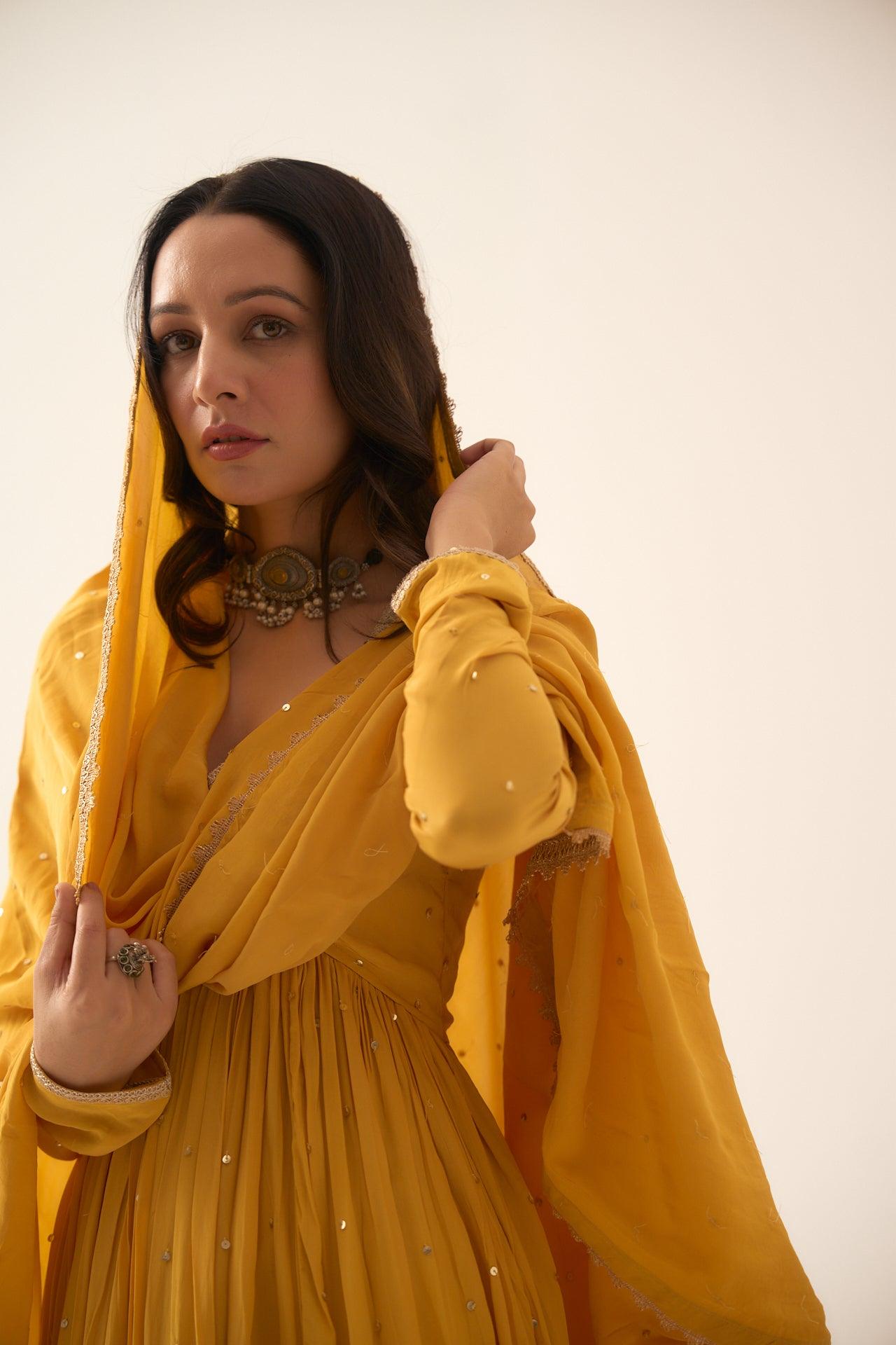 Brightest hues of yellow, made to add an extra glow to your face. Take it to your bridal trousseau as an added love to yourself.