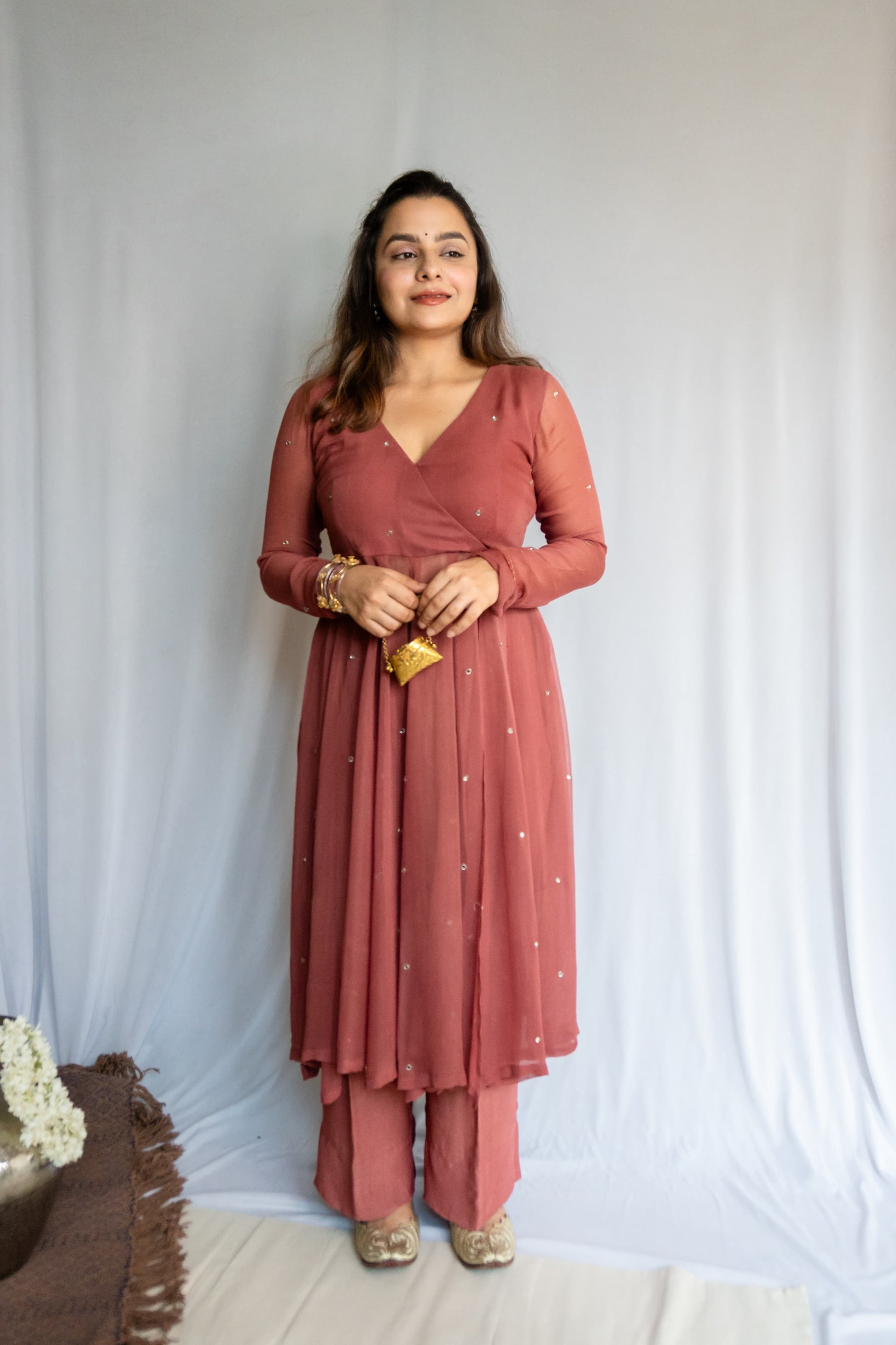 A cousin of mine walked in one day, excited about her new shade— Pillow Talk Original. The name lingered, as did the colour. She wanted an outfit in that same muted, romantic tone. “Simple and elegant,” she said.
