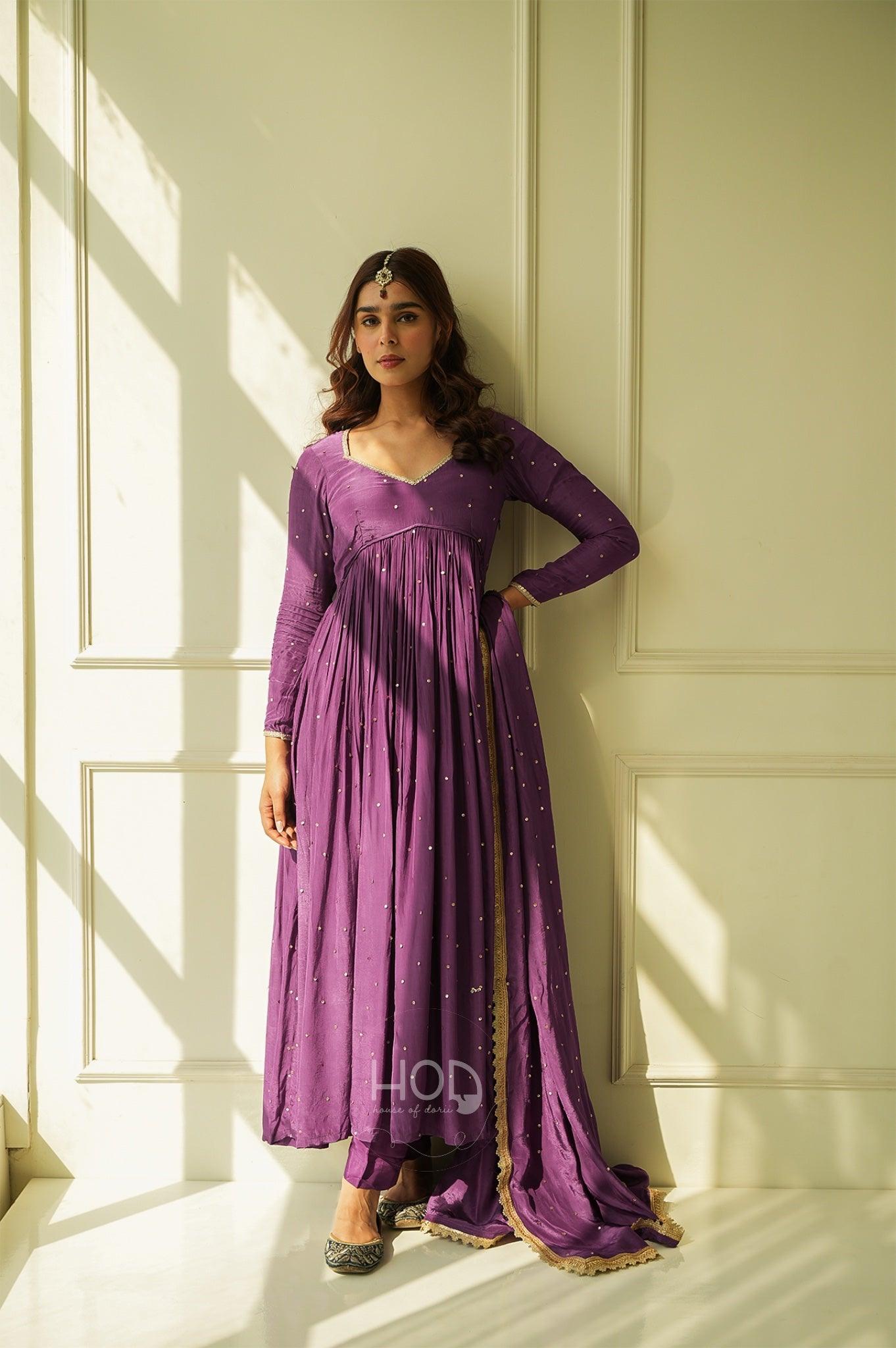 Brightest hues of Plum purple made to add an extra glow to your face. Take it to your bridal trousseau as an added love to yourself.