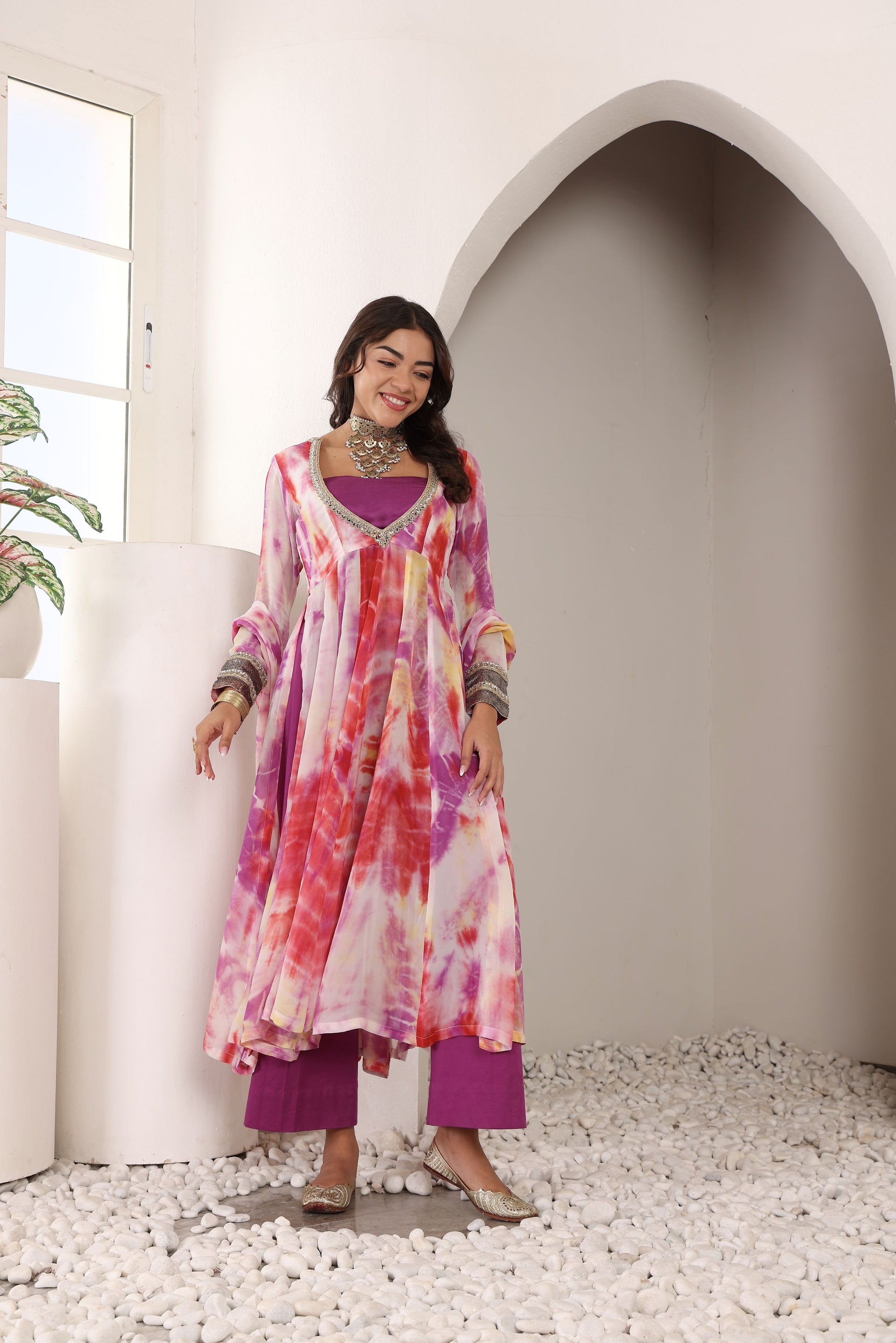 • Kurta: Soft and breathable viscose georgette with a slit Anarkali silhouette