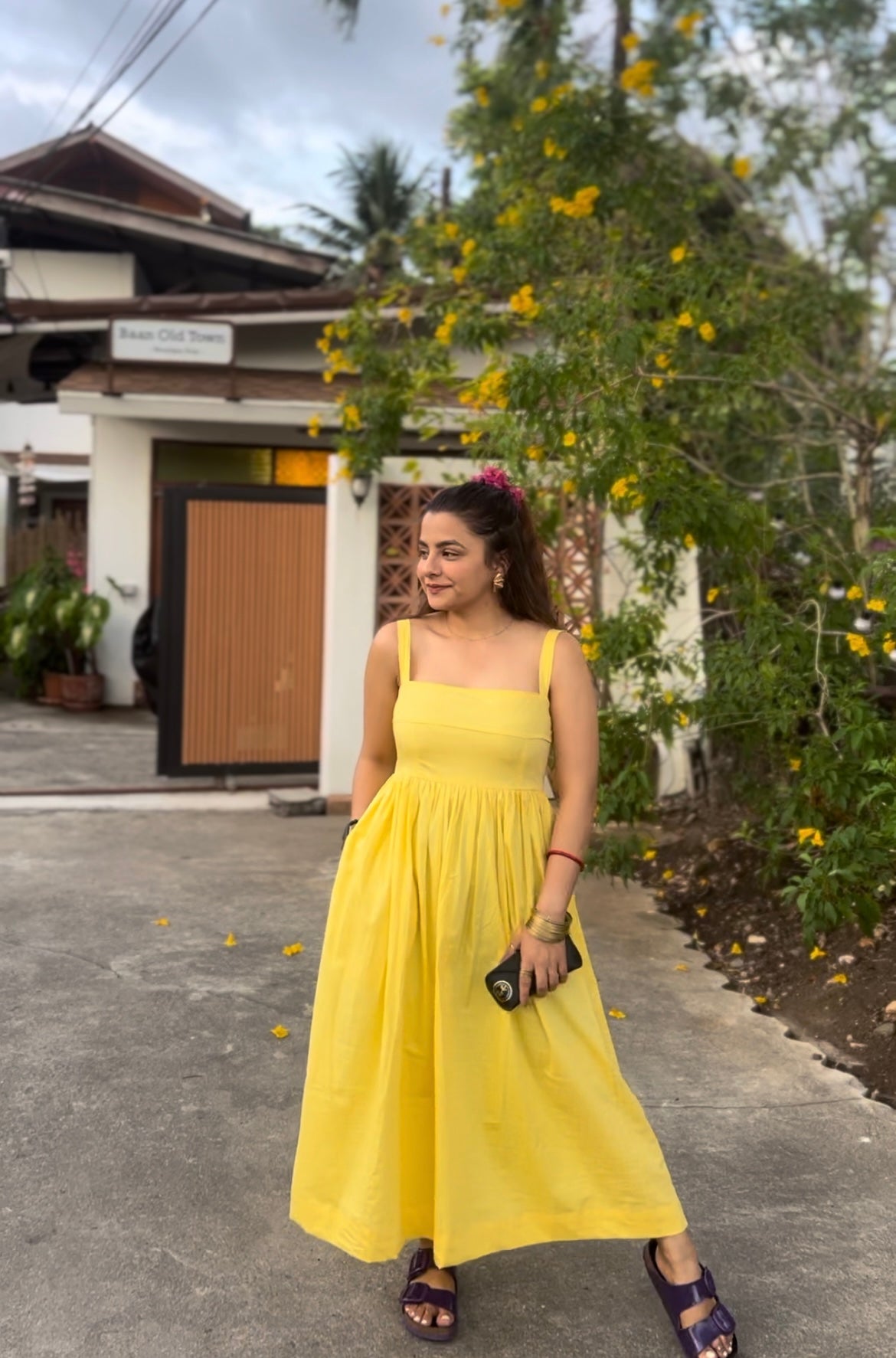 Sundress as the name suggest is a beautiful poplin cotton dress made in the brightest hue of the amalgam flowers, very vibrant and visible for you to fall in love with. This stunner dress is a comfy pick for your beach vacation planned.